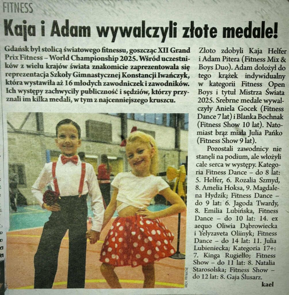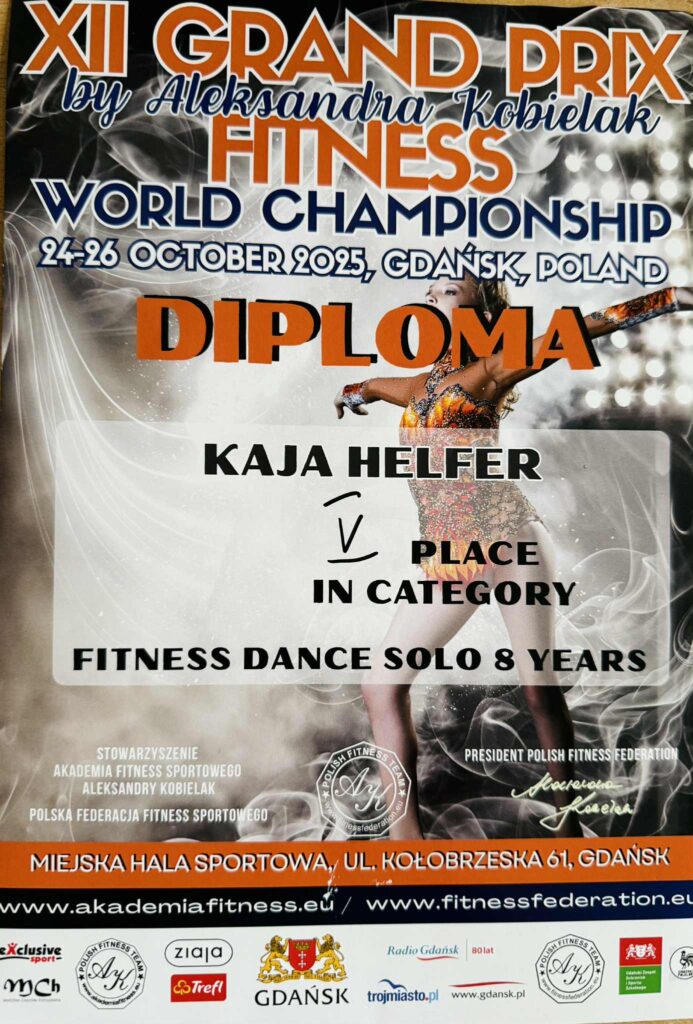 W dniach 24–25 października 2025 w Gdańsku odbyła się XII edycja Grand Prix Fitness World Championship – prestiżowe zawody gromadzące najlepszych młodych sportowców z kraju i zagranicy. W rywalizacji wzięła udział uczennica z naszej szkoły – Kaja Helfer (z klasy 2a),  reprezentując Szkołę Gimnastyczną Konstancji Iwańczyk w Sanoku. Młoda zawodniczka zaprezentowała się znakomicie!