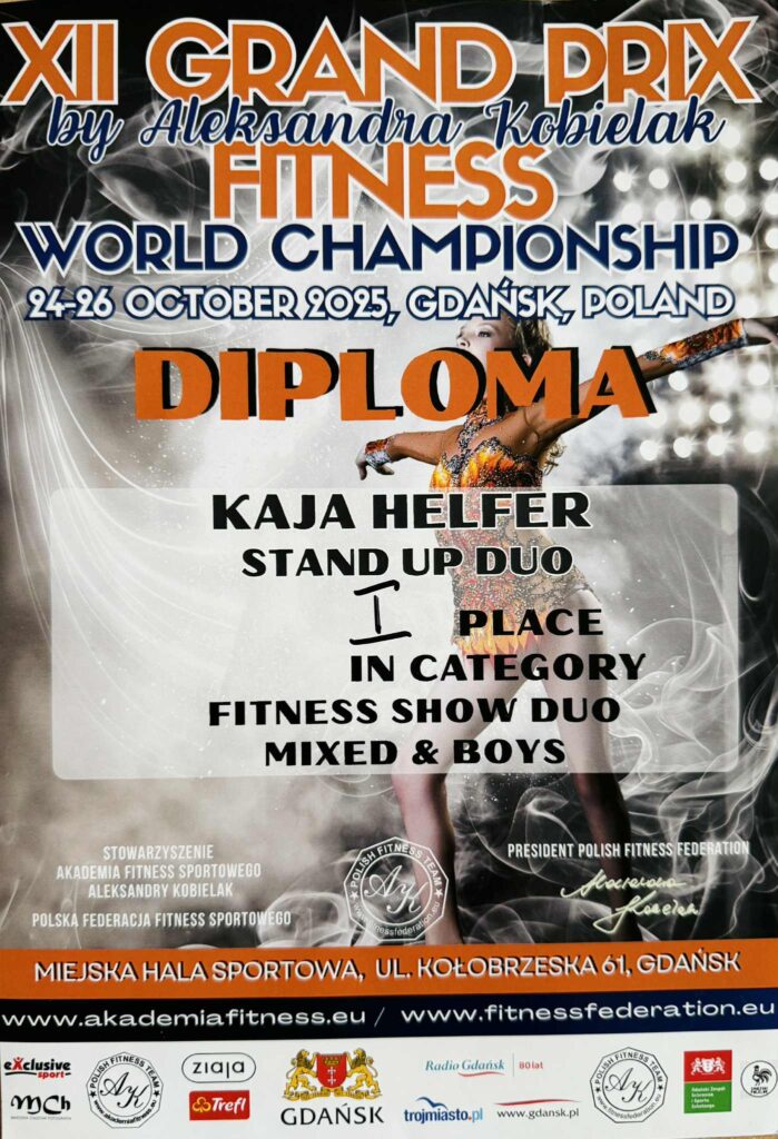 Kaja zdobyła złoty medal w kategorii Fitness Mix & Boys Duo, występując w duecie