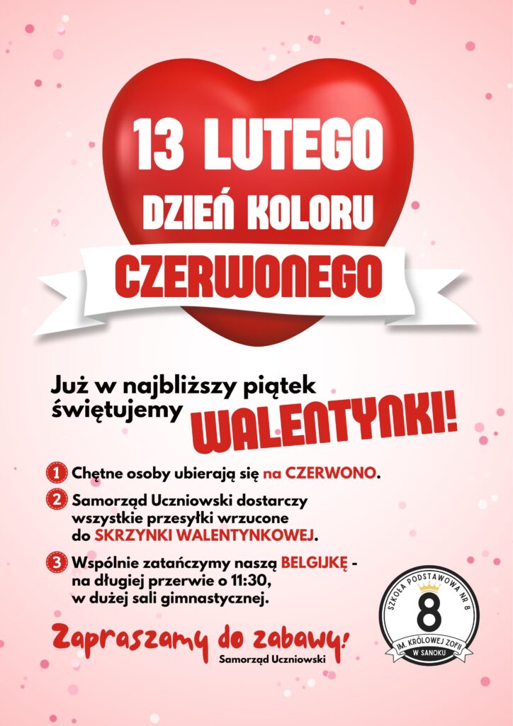 13 LUTEGO – DZIEŃ KOLORU CZERWONEGO – akcja Samorządu Uczniowskiego SP8…