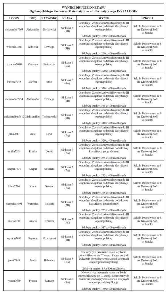 Aż 13 uczniów zakwalifikowało się do 3 etapu Ogólnopolskiego Konkursu Matematyczno – Informatycznego INSTALOGIK.