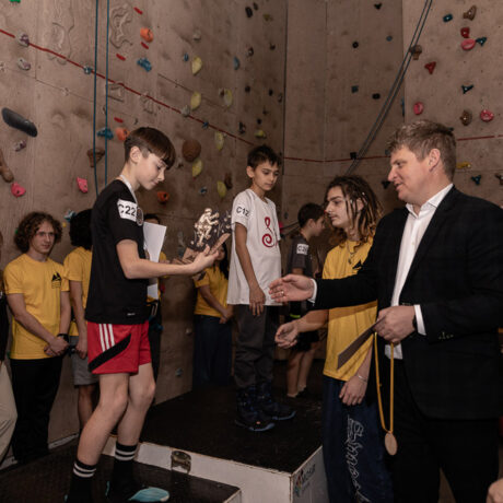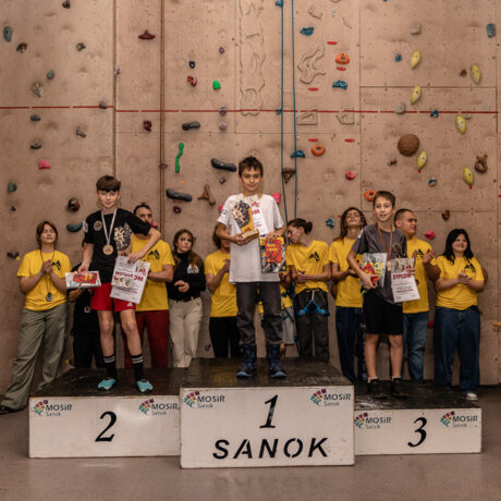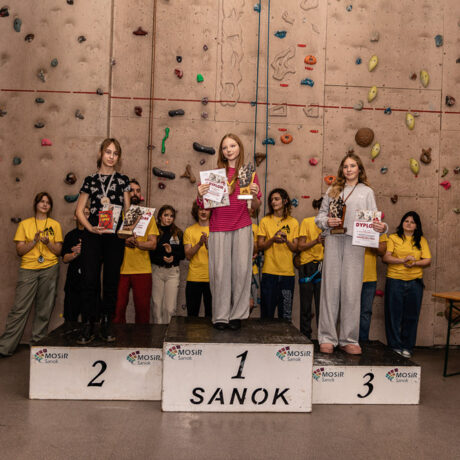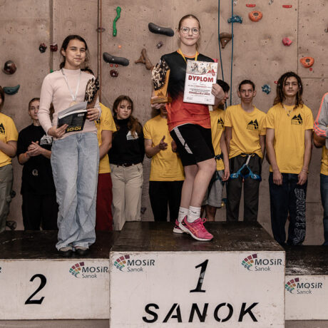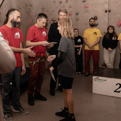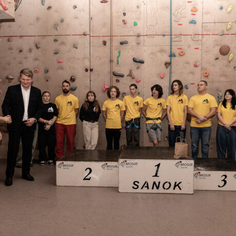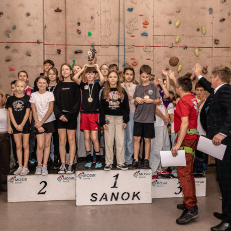 Miło nam poinformować, że w dniu 8.12.2025 podczas Mistrzostw Sanoka we Wspinaczce Halowej SanClimbfEst 2025, które odbyły się w Centrum Sportów Ekstremalnych w Sanoku, nasza drużyna w składzie: Zofia Adamska (5b), Milena Sikoń (5a), Aleksander Drwięga (6b), Tymoteusz Adamski (6b), Lidia Gajewska (7a), Dagmara Kuś (7b), Kosma Kosiek (7b), Sebastian Świderski (8a), zajęła I MIEJSCE i zdobyła puchar ufundowany przez Starostę Powiatu Sanockiego. W imieniu Starosty, puchar wręczył WiceStarosta Powiatu Sanockiego p. Damian Biskup.