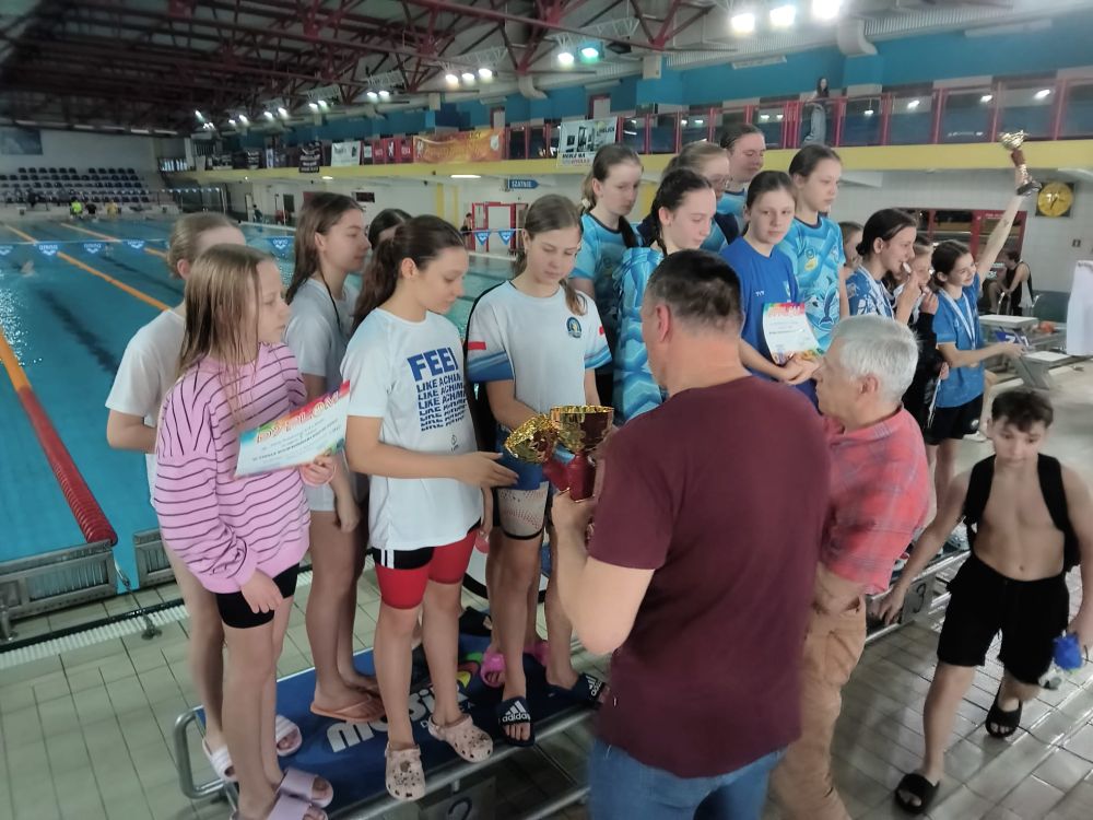 Warto zauważyć i docenić nie tylko startujących w zawodach zawodników. Na nagrodę i wielkie uznanie zasługują WSZYSCY UCZNIOWIE KLASY SPORTOWEJ PŁYWACKIEJ 6A. Ich ciężka praca na treningach o 7 rano, zaangażowanie i rywalizacja o miejsce w pierwszym składzie pozwoliła stworzyć drużyny, które liczą się w województwie. Bravo!!!
