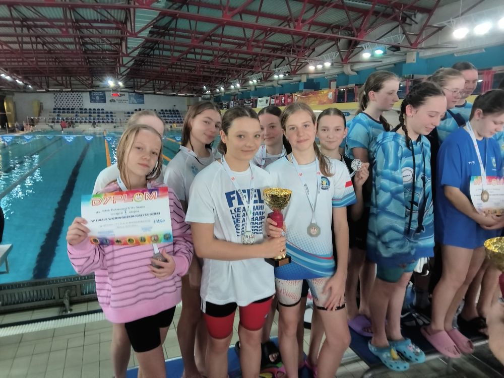 Pierwszy dzień wiosny był wyjątkowo udany. Plan trenera Grzegorza zrealizowany w 100 procentach. Najpierw wspaniała walka w sztafecie pływackiej dziewcząt. SP Tarnobrzeg na pierwszym miejscu, a po bardzo wyrównanej walce mamy WICEMISTRZOSTWO WOJEWÓDZTWA DZIEWCZĄT W PŁYWANIU DRUŻYNOWYM, które jest największym osiągnięciem w historii naszej szkoły w pływaniu. Drużyna wystąpiła w składzie: Róża Kameczura, Zofia Tabisz, Bianka Trznadel, Natalia Duślak, Emilia Futryk, Nadia Bluj i Zuzanna Pietruszka (wszystkie są uczennicami klas sportowej pływackiej 6a).