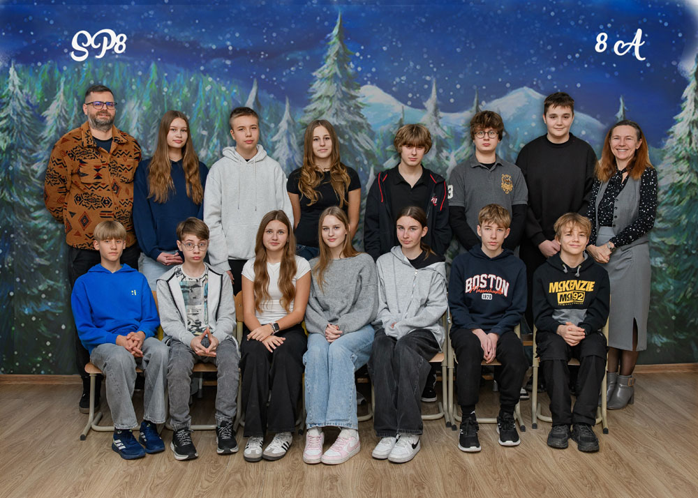 GALERIA KLAS SP8 Sanok Rok Szkolny 2025/2026 GALERIA KLAS – 2023/2024 wychowawca: Greta Bluj (nauczyciel wspomagający: Monika Dobosz-Lorenc) wychowawca: Magdalena Żak (nauczyciele wspomagający: Elżbieta Maciejowska, Kinga Kołodziejczyk, Tomasz Wolanin, Tomasz Czapor) wychowawca: Karolina Mróz (nauczyciel wspomagający: Małgorzata Skarbowska) wychowawca: Renata Zagórska wychowawca: Kamila Florko (nauczyciel wspomagający: Małgorzata Kukla-Krestian) wychowawca: Renata Głuszyk (nauczyciel wspomagający: Aneta Pelc) wychowawca: Adam Kocoń (nauczyciel wspomagający: Ewelina Kędra) wychowawca: Marzena Radwańska (nauczyciel wspomagający: Anna Żuchowska) wychowawca: Marzena Brejta (nauczyciel wspomagający: Ewelina Kędra) wychowawca: Magdalena Marczak wychowawca: Sebastian Wasylik wychowawca: Zenona Kaleniecka wychowawca: Katarzyna Krawiecka wychowawca: Maria Trzeciak (nauczyciel wspomagający: Barbara Silarska) wychowawca: Daniel Sękowski wychowawca: Grażyna Osieczko (nauczyciele wspomagający: Anna Kurinka-Rewak, Maria Wojnarowska) wychowawca: Wioletta Florek wychowawca: Izydora Rydosz (nauczyciel wspomagający: Mariusz Bieńko) wychowawca: Anna Struś (nauczyciel wspomagający: Maria Wojnarowska) GALERIA KLAS – 2022/2023