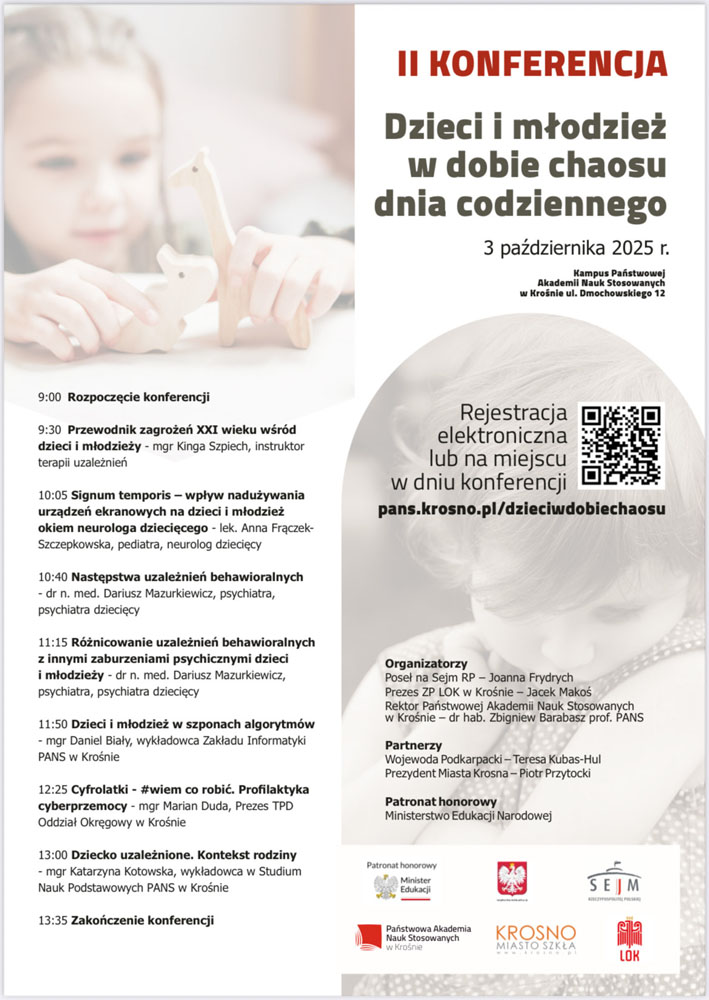 3 października 2025 r. w PANS w Krośnie odbędzie się konferencja naukowa skierowana do rodziców, nauczycieli, pedagogów i osób pracujących na co dzień z dziećmi i młodzieżą.