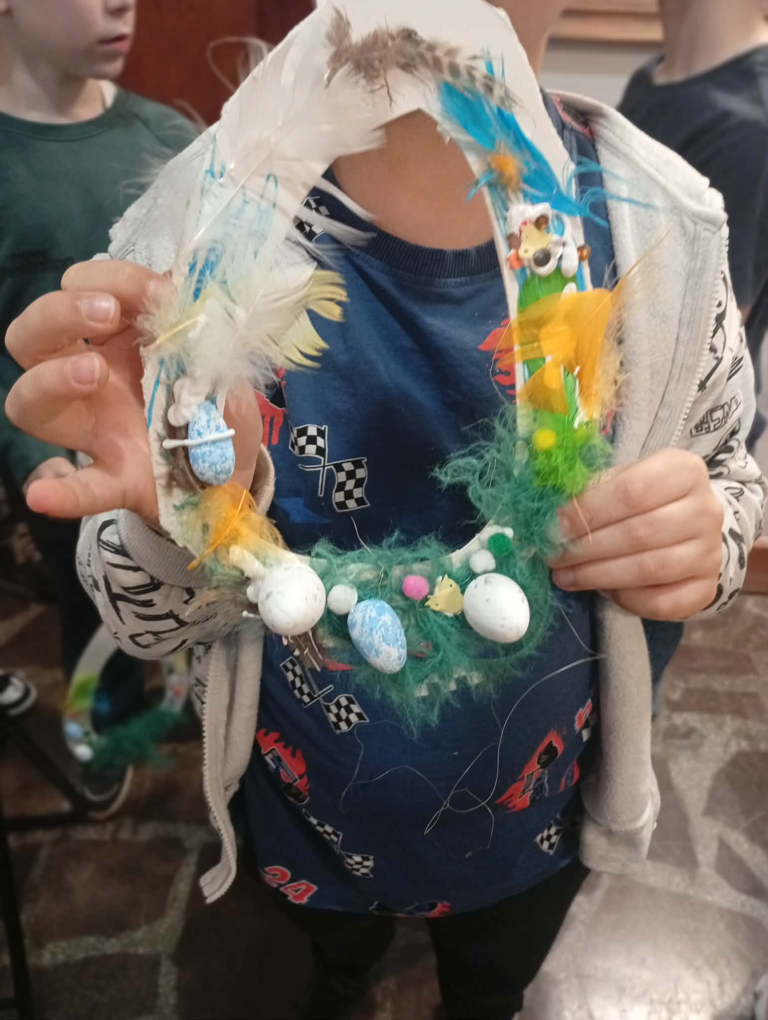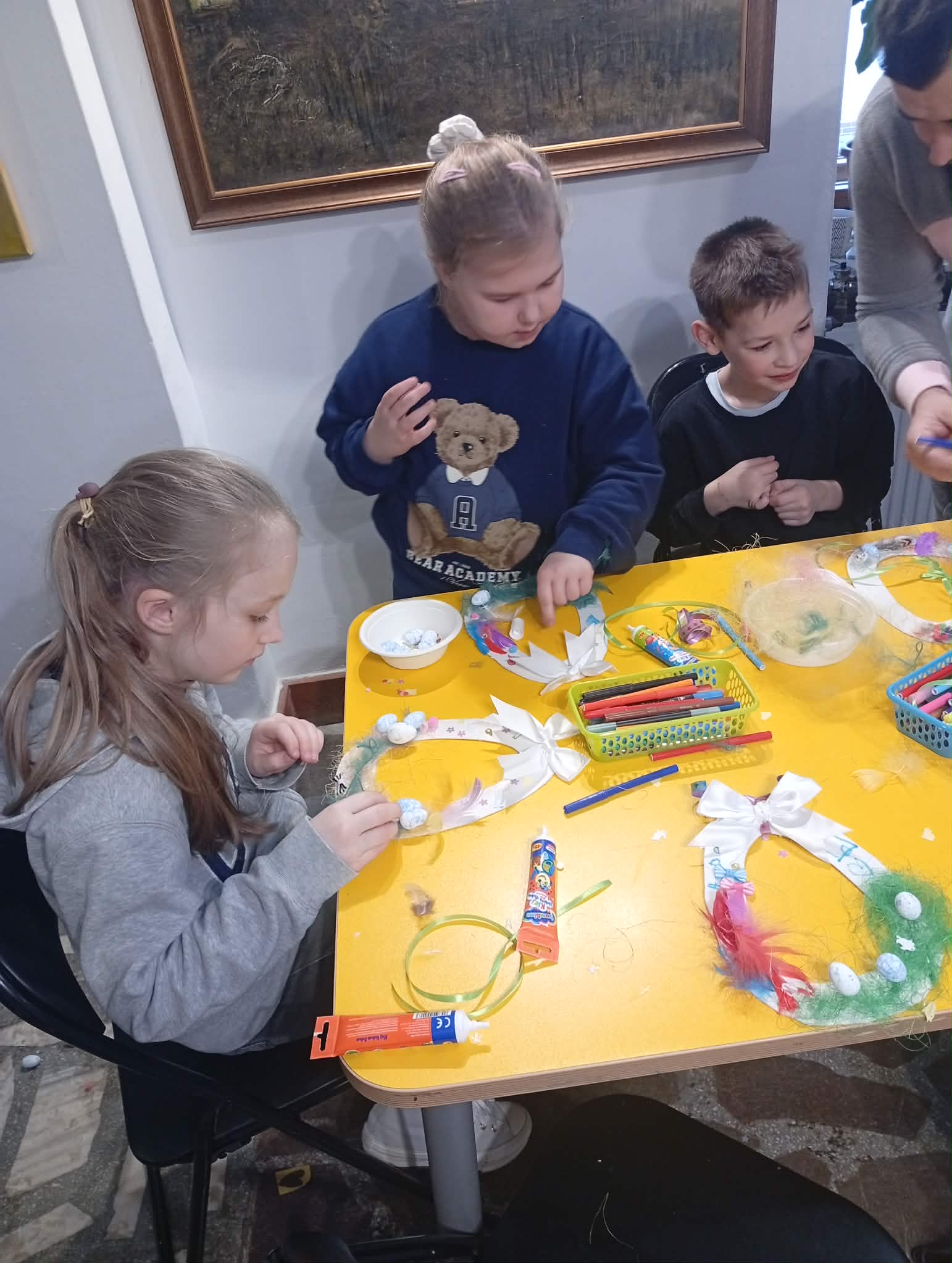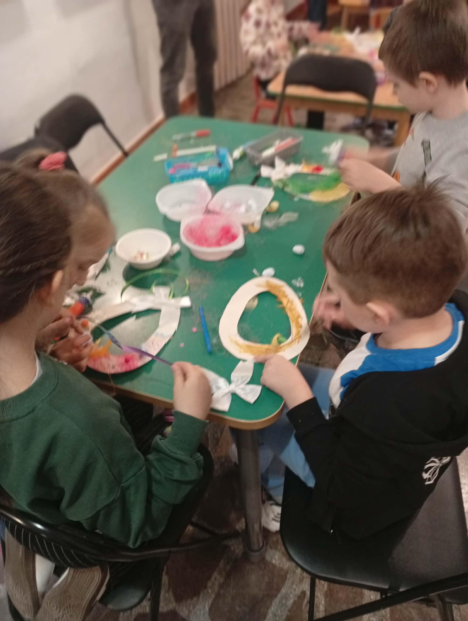 Uczniowie klasy 1b wzięli udział w warsztatach plastycznych w pobliskim Młodzieżowym Domu Kultury, podczas których z ogromnym zaangażowaniem i radością tworzyli piękne, wielkanocne ozdoby. Dzieci wykazały się dużą kreatywnością, starannością oraz pomysłowością, a efektem ich pracy są kolorowe i wyjątkowe dekoracje, które wprowadzają prawdziwie świąteczny nastrój. Wspólna praca była nie tylko okazją do rozwijania zdolności manualnych, ale także do integracji i dobrej zabawy.