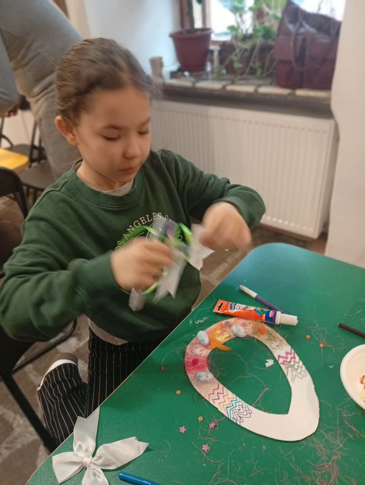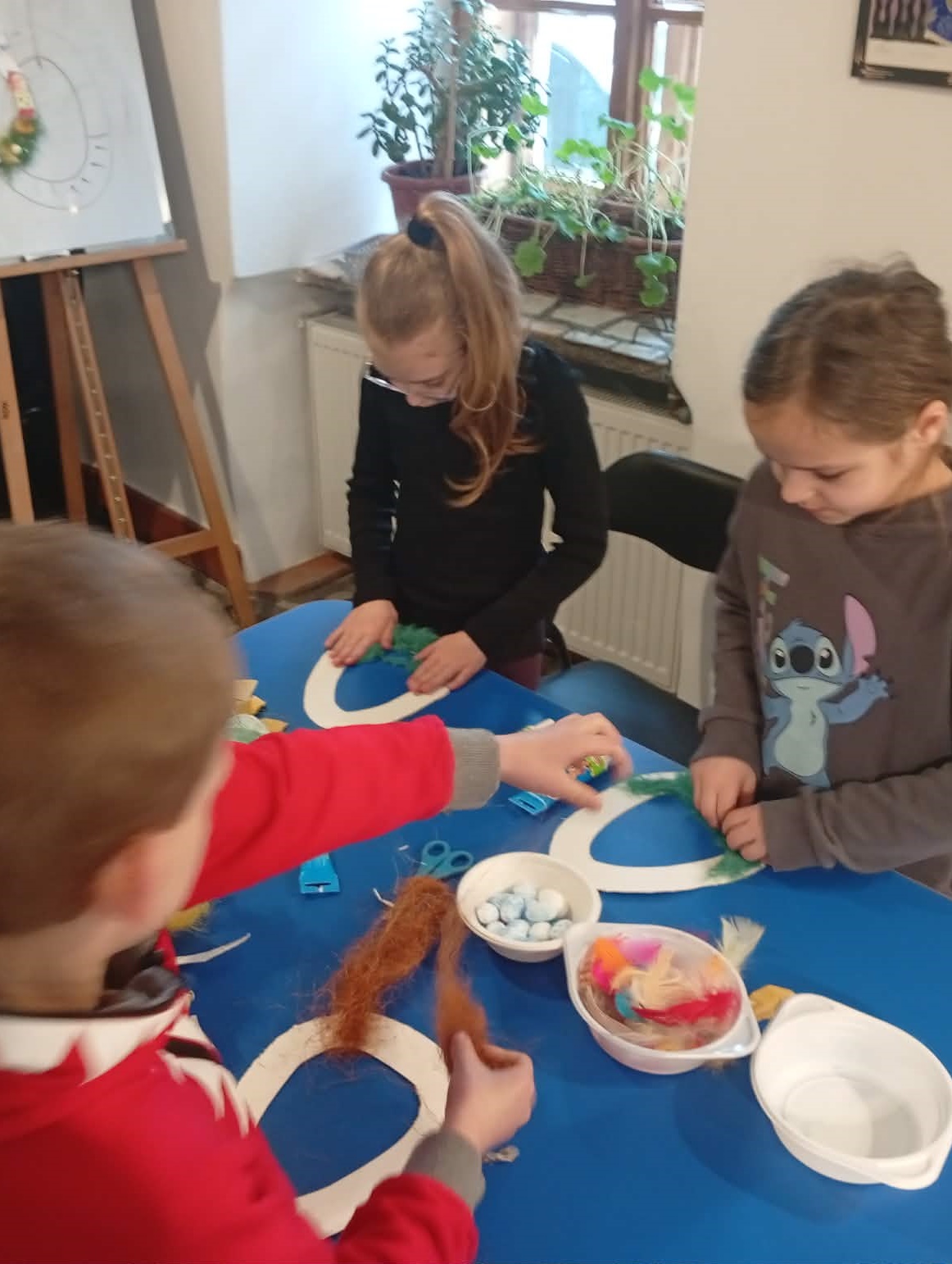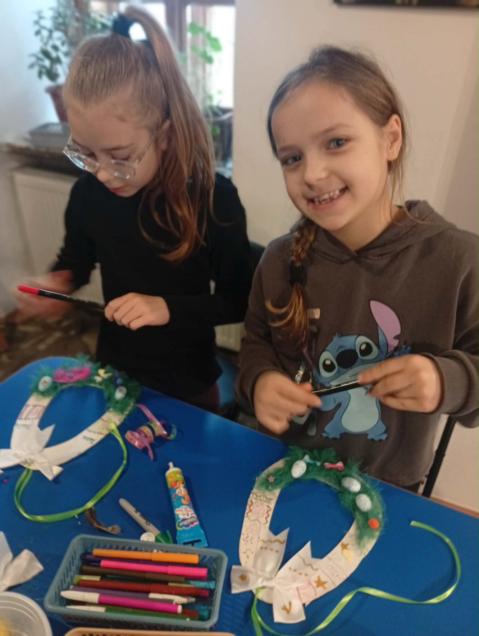 Uczniowie klasy 1b wzięli udział w warsztatach plastycznych w pobliskim Młodzieżowym Domu Kultury, podczas których z ogromnym zaangażowaniem i radością tworzyli piękne, wielkanocne ozdoby. Dzieci wykazały się dużą kreatywnością, starannością oraz pomysłowością, a efektem ich pracy są kolorowe i wyjątkowe dekoracje, które wprowadzają prawdziwie świąteczny nastrój. Wspólna praca była nie tylko okazją do rozwijania zdolności manualnych, ale także do integracji i dobrej zabawy.