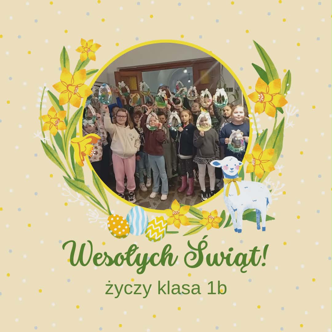Z okazji nadchodzących Świąt Wielkanocnych uczniowie klasy 1b – życzą wszystkim dużo radości, spokoju, wiosennego optymizmu oraz wielu pięknych chwil spędzonych w gronie najbliższych.