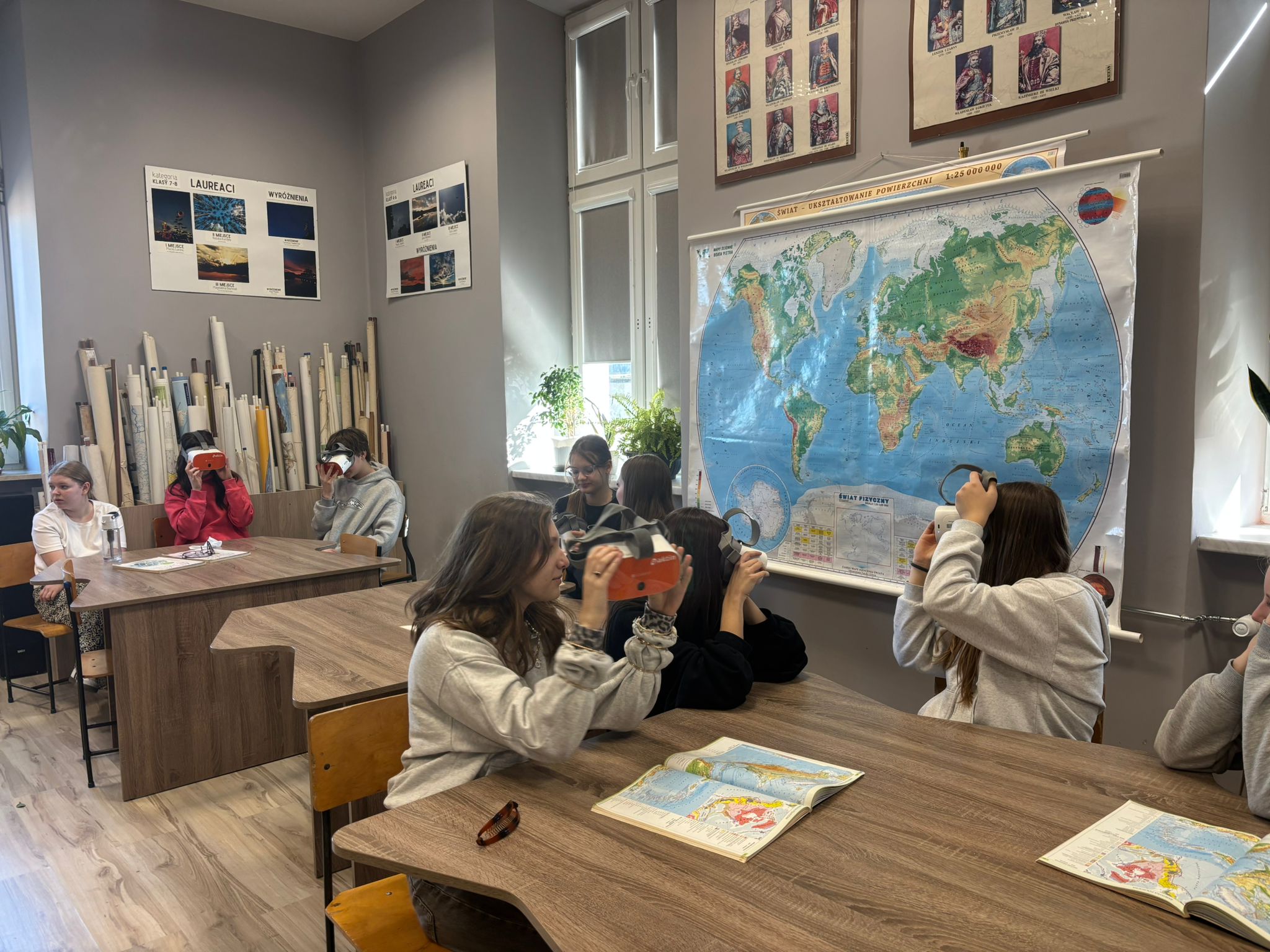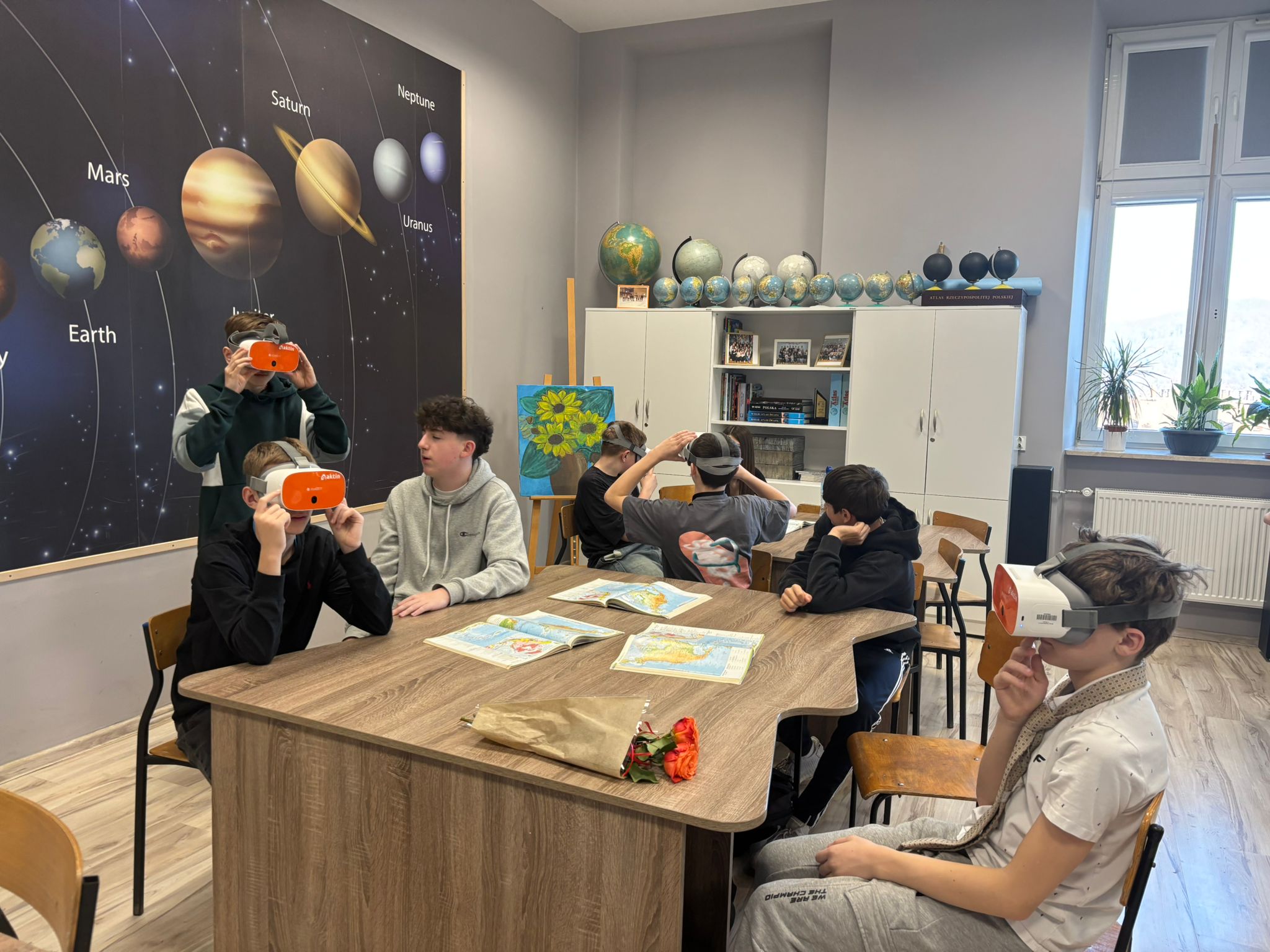 Uczniowie klasy 8b mieli okazję zapoznania się z tymi procesami na lekcji geografii przy pomocy okularów 3D.