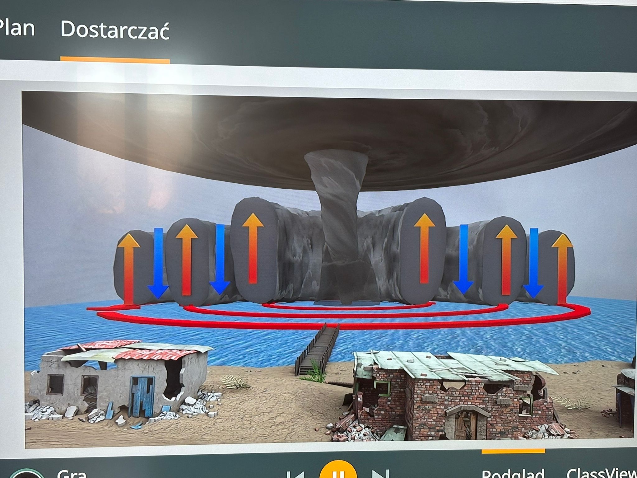 - Zrozumienie rotacji (dynamika): Okulary 3D pozwalają lepiej dostrzec, że tornado to bryła.