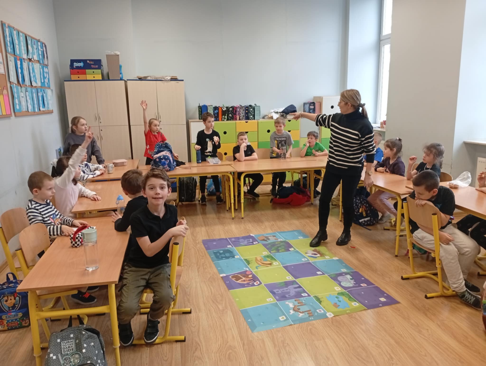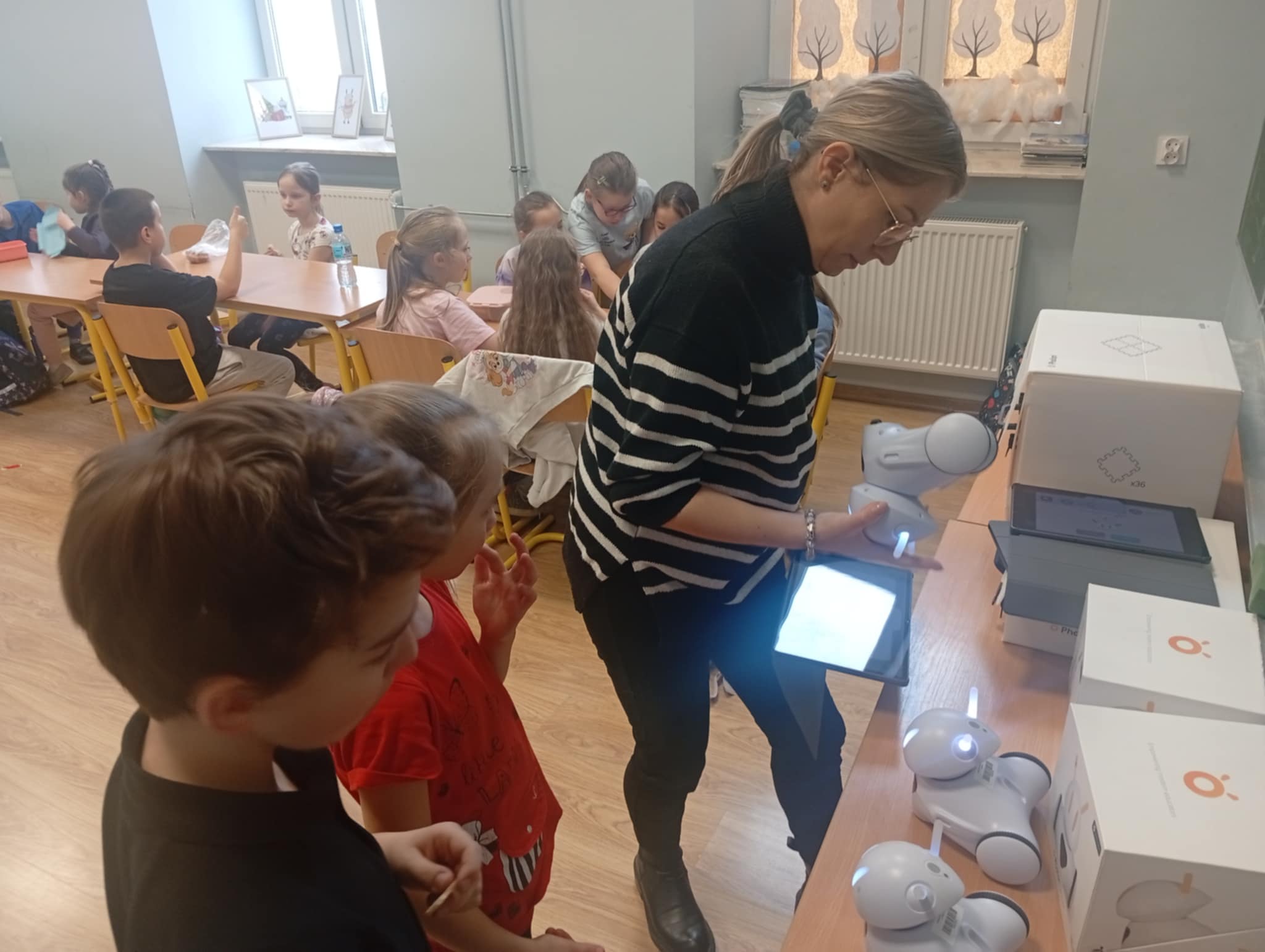 Rozpoczynając nowy semestr szkolny w klasie 1b zagościła pani Greta Bluj, wychowawczyni klasy 1a, która zaprezentowała dzieciom niezwykłego gościa – robota Photon.