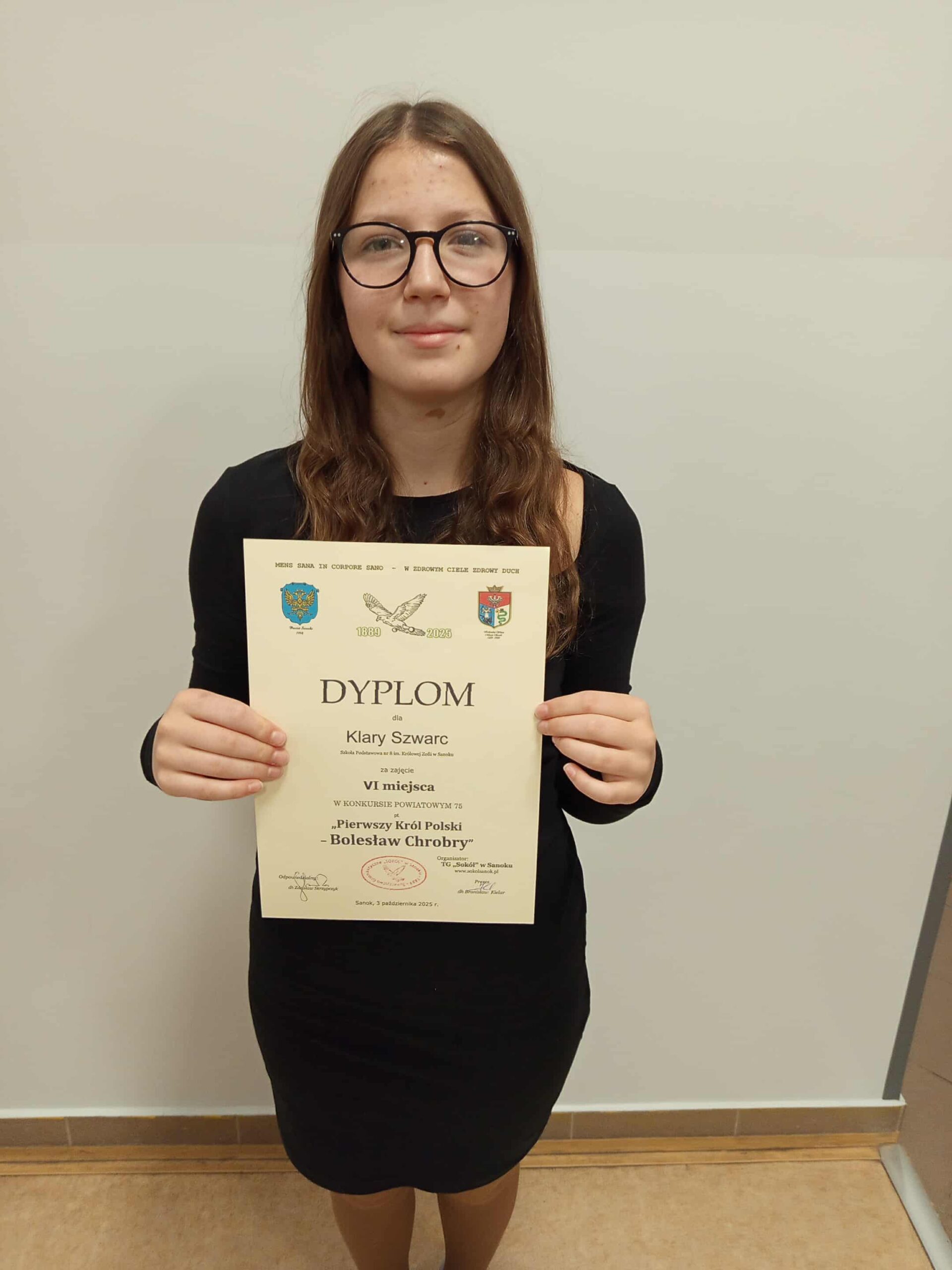 W zmaganiach konkursowych udział wzięło trzech reprezentantów Szkoły Podstawowej nr 8 im. Królowej Zofii w Sanoku. Michał Skowroński z klasy VI B zajął 18 miejsce, Weronika Wolanin z klasy VII B zajęła 13 miejsce, natomiast Klara Szwarc z klasy VII A sklasyfikowana została na znakomitym 6 miejscu. Premiowane to było przez organizatorów otrzymaniem dyplomu. Bardzo dziękujemy naszym reprezentantom za udział w zmaganiach konkursowych i zachęcamy do uczestnictwa w kolejnych konkursach historycznych.