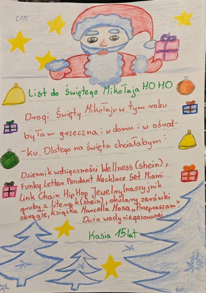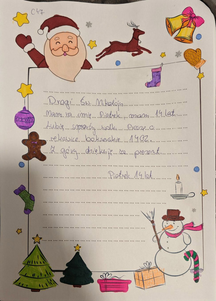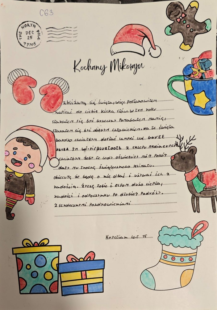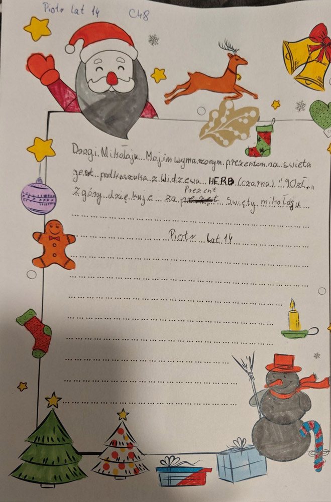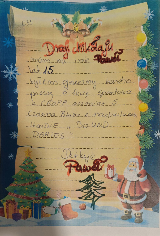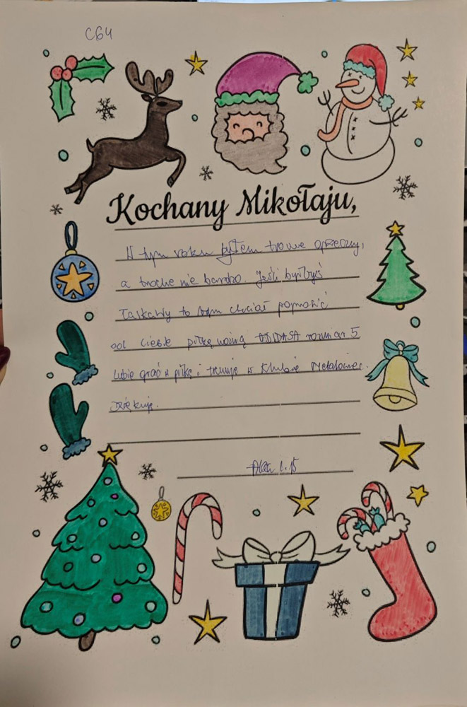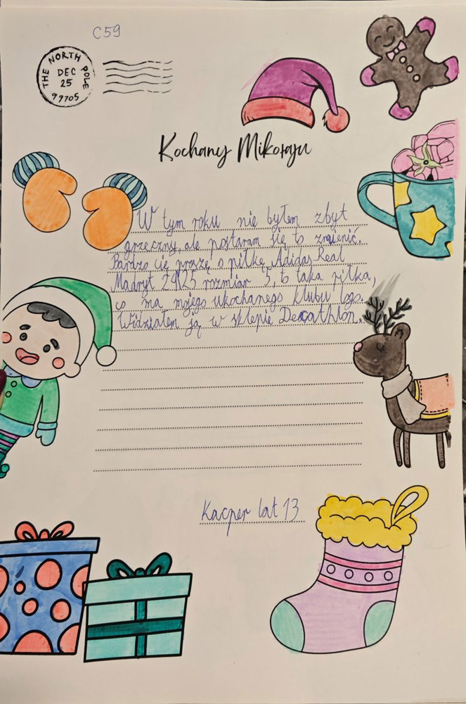 - Każdy list opatrzony jest unikatowym kodem z imieniem dziecka – trzeba tak oznaczyć każdą paczkę.