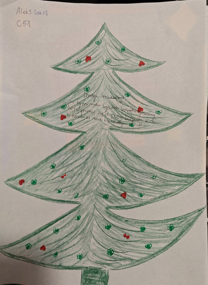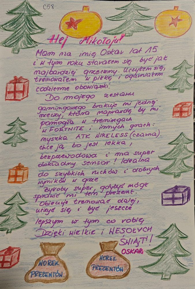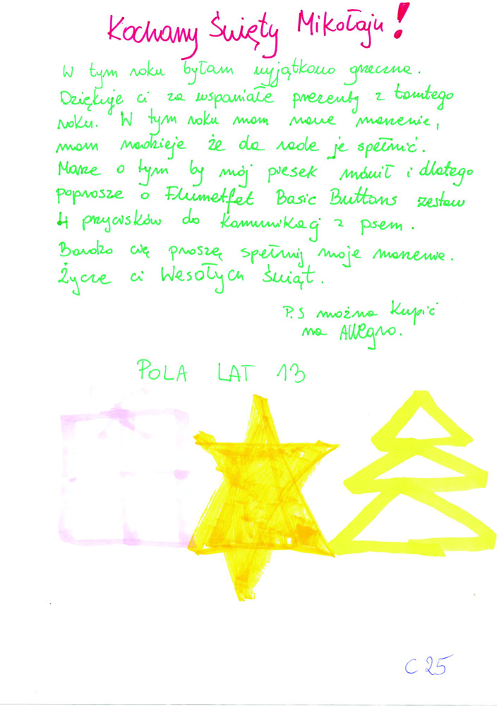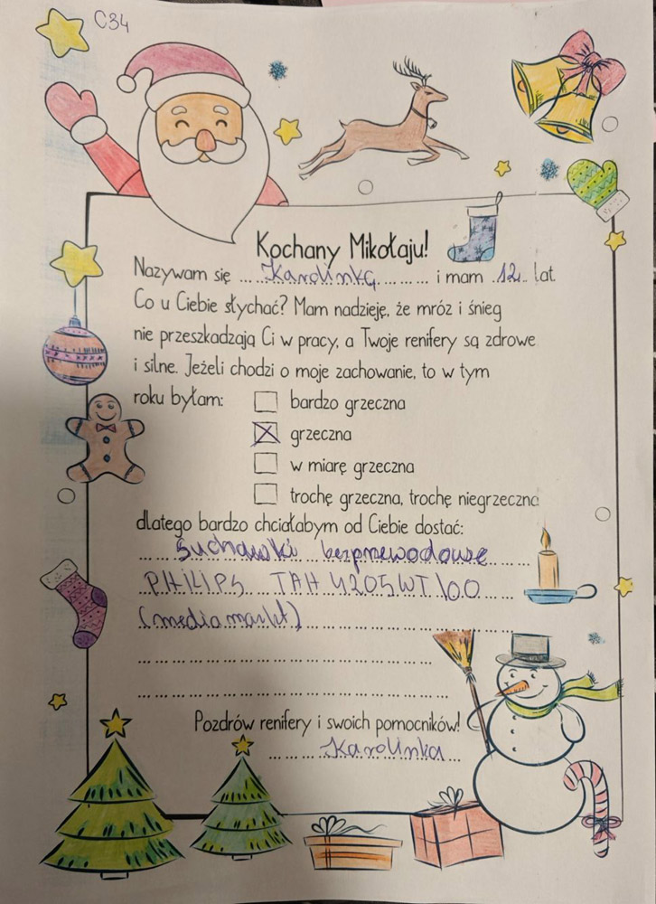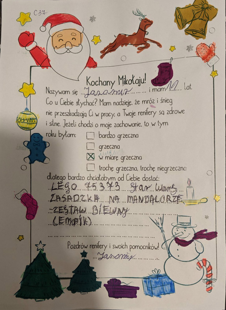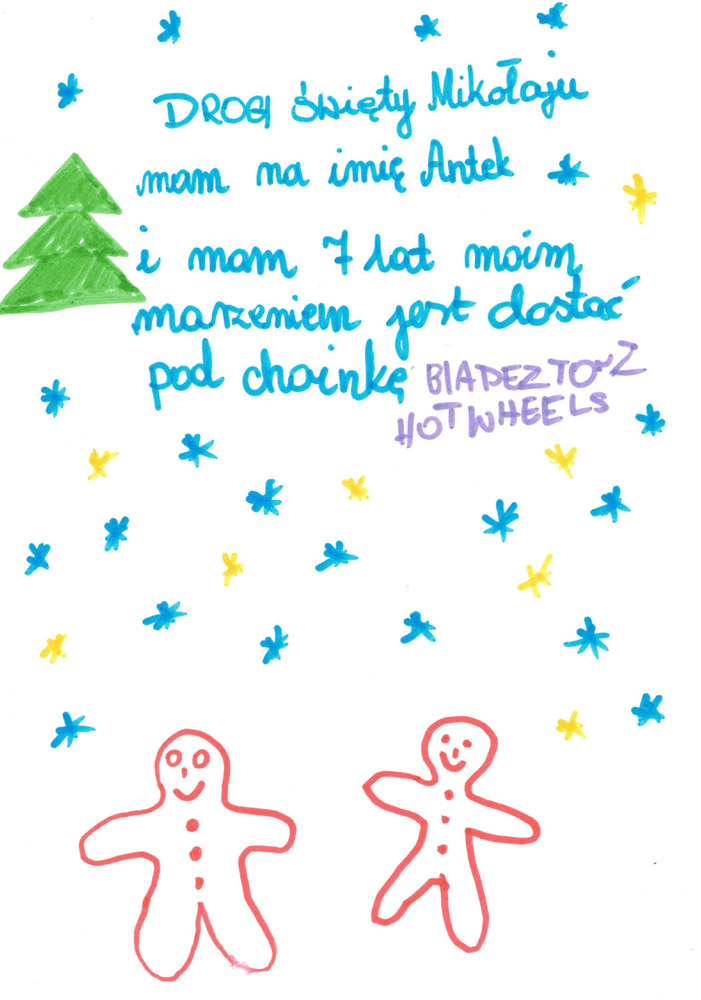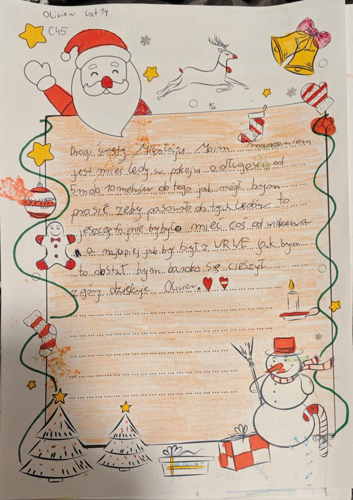 - Każdy list opatrzony jest unikatowym kodem z imieniem dziecka – trzeba tak oznaczyć każdą paczkę.