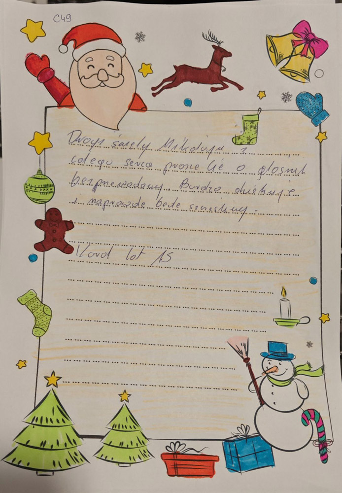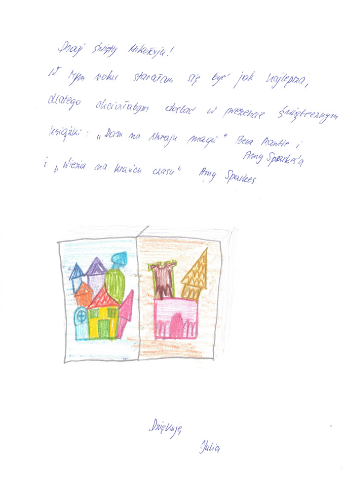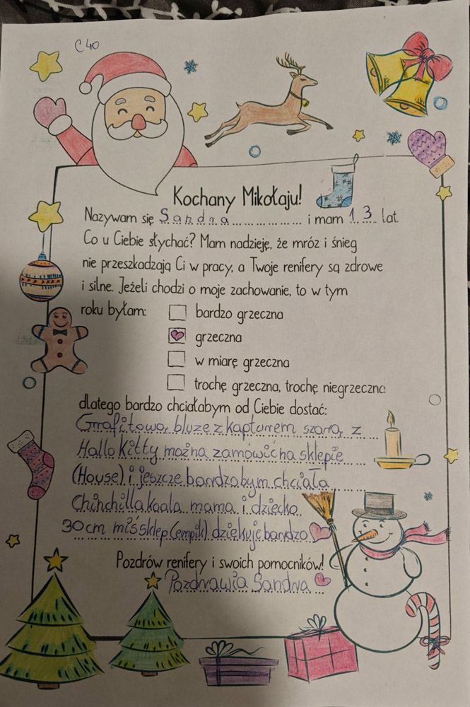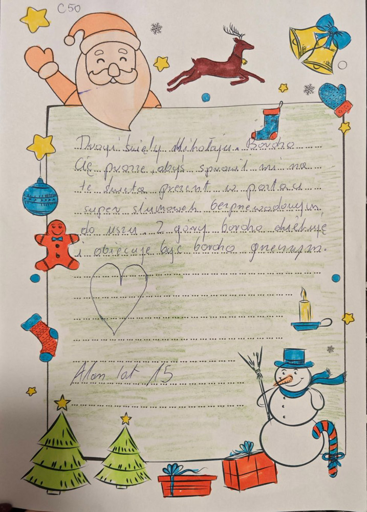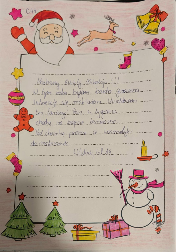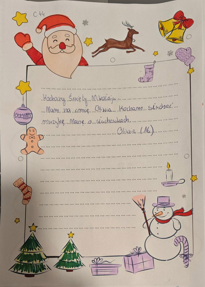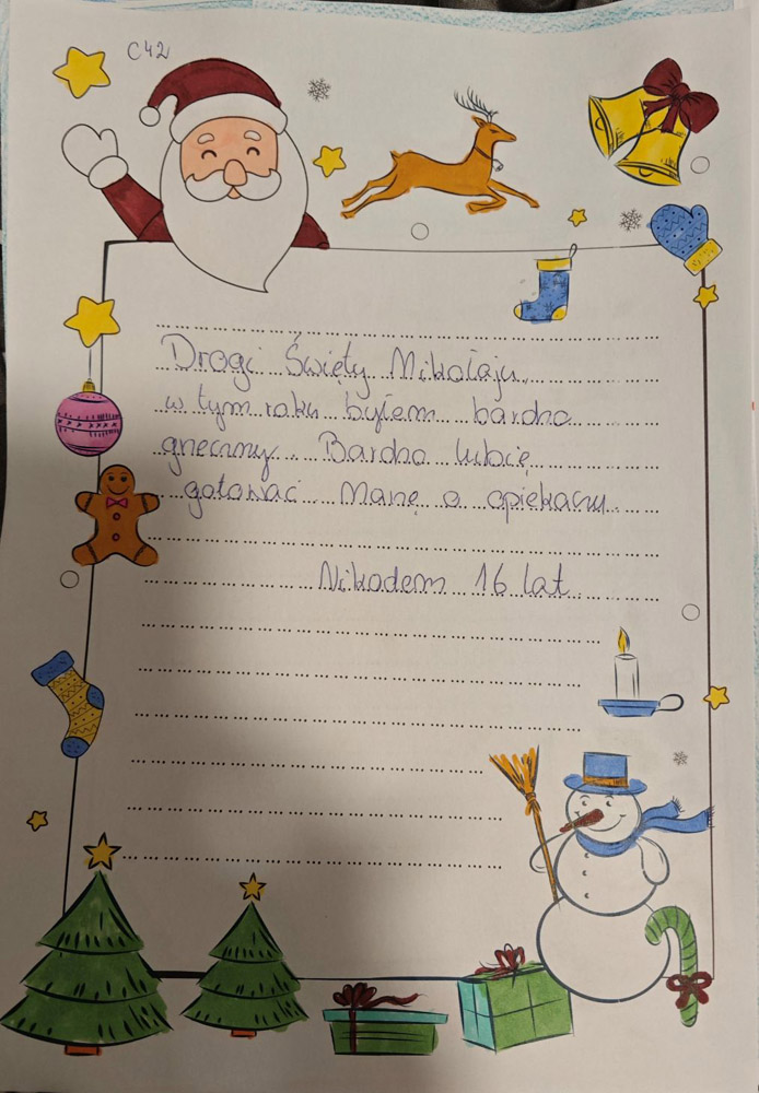 - Fajnie będzie jeśli jako pomocnicy Mikołaja napiszemy parę słów z życzeniami świątecznymi do dzieciaków.
