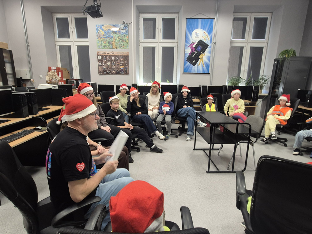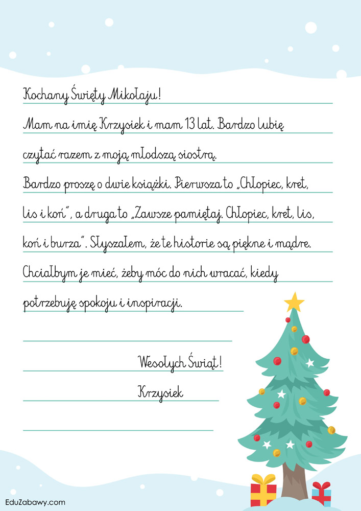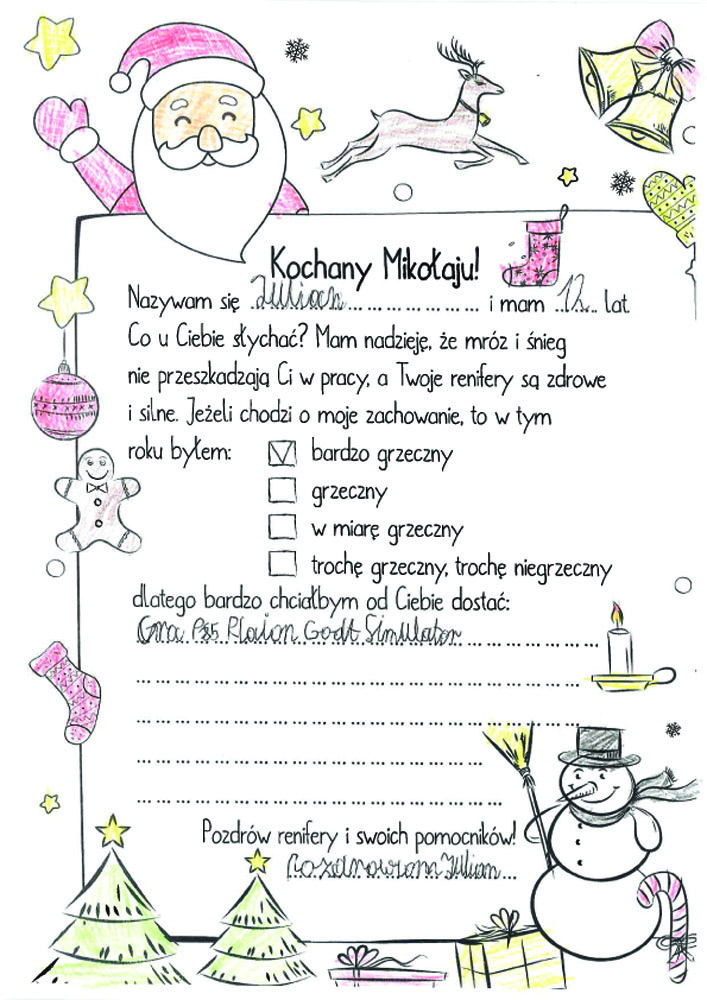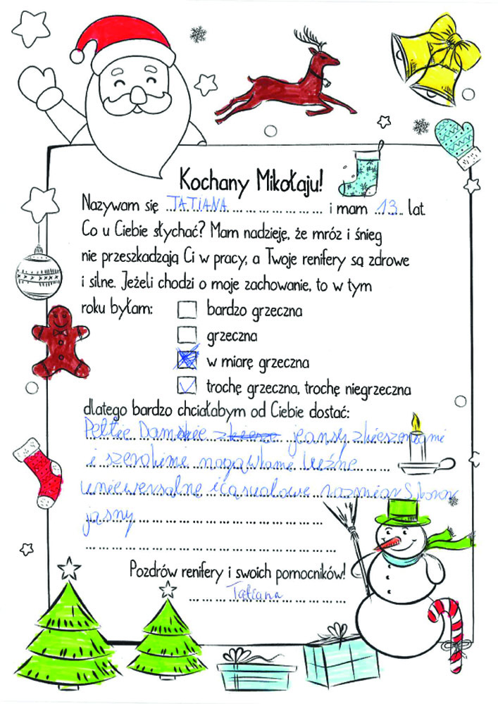 - Fajnie będzie jeśli jako pomocnicy Mikołaja napiszemy parę słów z życzeniami świątecznymi do dzieciaków.