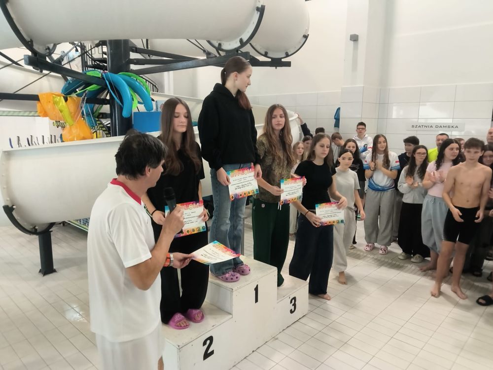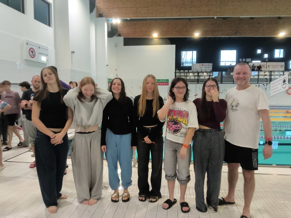 Reprezentacja dziewcząt tuż poza podium IMS w pływaniu 🙁 Dnia 11 lutego na sanockim obiekcie CRiS w Sanoku odbyły się Półfinały Igrzysk Młodzieży Szkolnej w pływaniu. Naszą szkołę reprezentowały uczennice klas 7 i 8. Drużyna w składzie: Natalia Futryk, Wiktoria Sadleja, Wiktoria Abako, Klara Szwarc, Lidia Gajewska i Lena Izdebska uplasowała się na 4 miejscu w rywalizacji półfinału wojewódzkiego. Niestety uzyskany czas nie pozwoli na start w finale. Zawodniczkom gratulujemy sportowej postawy i wałki do końca. 4 miejsce indywidualnie zajęła Natalia Futryk na 50m stylem dowolnym. Opiekunem drużyny był A. Dmitrzak