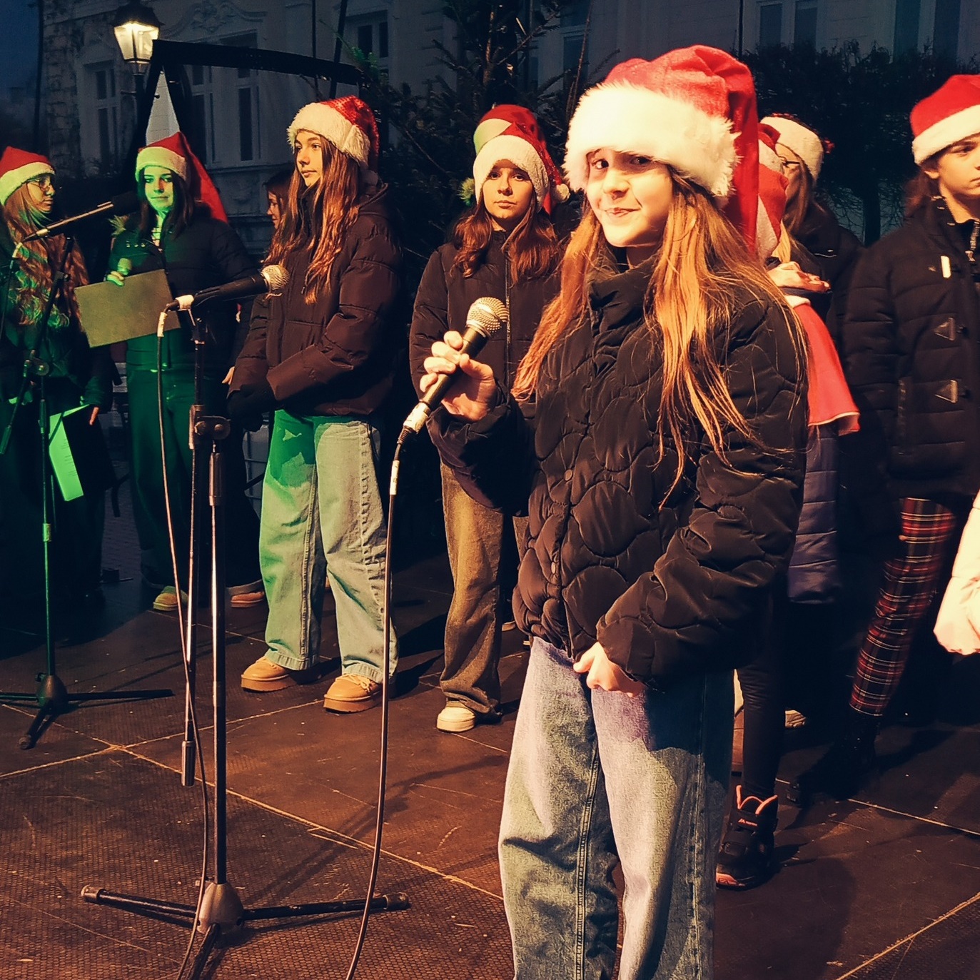 Serdecznie dziękujemy wszystkim uczniom, którzy wzięli udział w tym wydarzeniu – nie tylko za sam występ, ale także za Wasze zaangażowanie podczas prób i przygotowań. Wasz entuzjazm stworzył na rynku niezapomnianą, radosną i pełną świątecznego ciepła atmosferę.