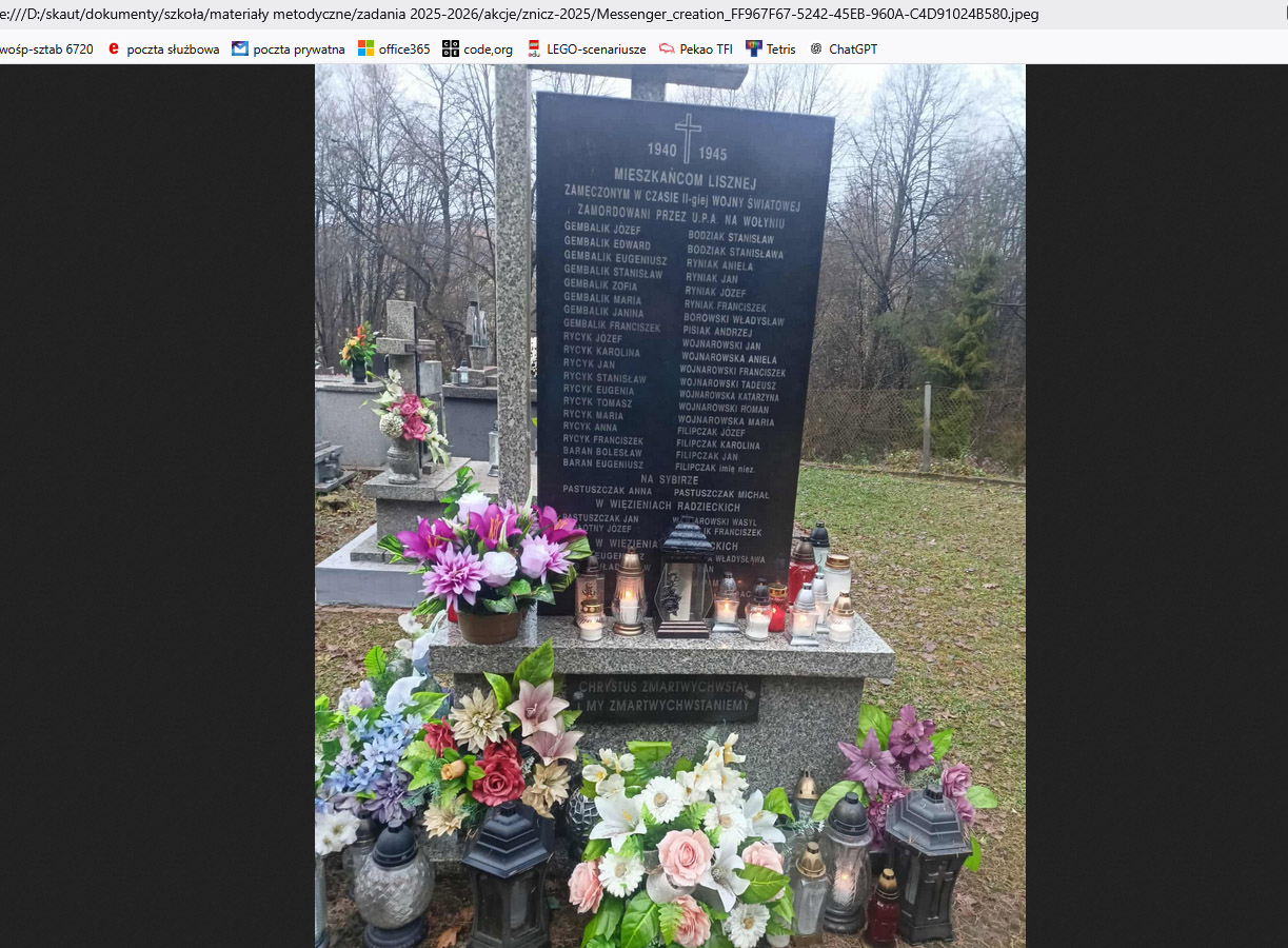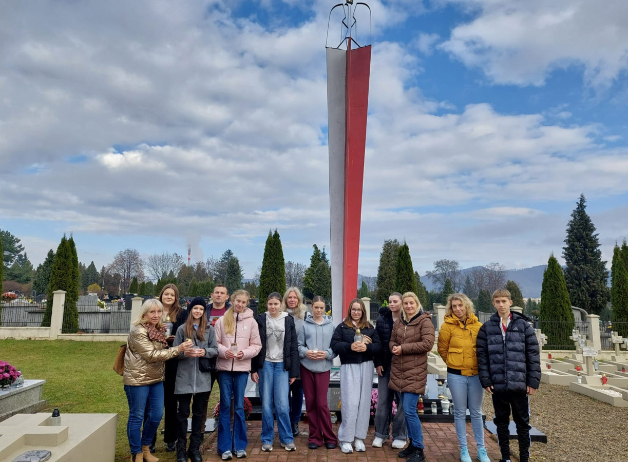 Dzięki naszej akcji ŚWIATEŁKO DLA BOHATERA, wspólnie z Młodzieżową Radą Miasta Sanoka (opieka p. Maria Trzeciak), społecznością Szkoły Podstawowej nr 6 im. Jana Pawła II w Sanoku (opieka p. Gertruda Lubieniecka-Jakiel) oraz 2 DH im. Aleksandra Kamińskiego MOUSE Hufiec ZHP Ziemi Sanockiej (opieka phm. Wacław Bojarski) nasza młodzież ze wsparciem naszych Rodziców oraz pod opieką naszych nauczycieli, czyli p. Marii Trzeciak i p. Marcina Oleniacza rozłożyła zebrane znicze 10 listopada 2025 r., tuż przed przed miejskimi obchodami Święta niepodległości.