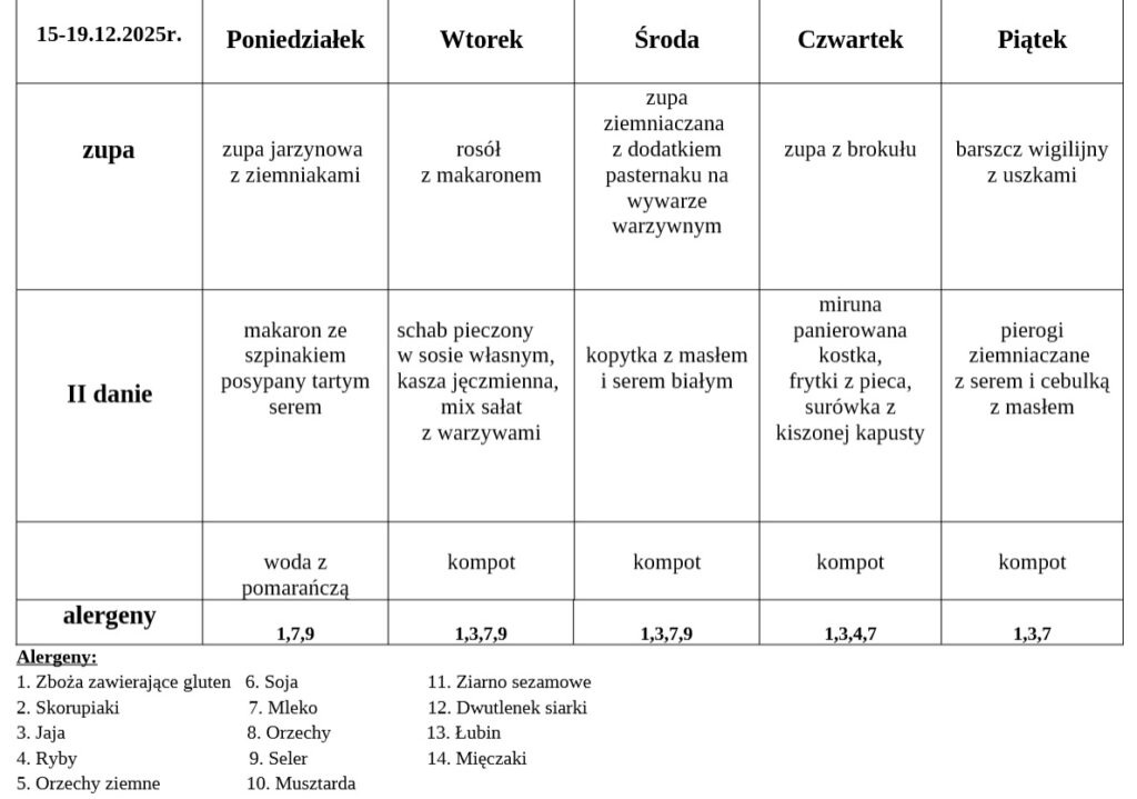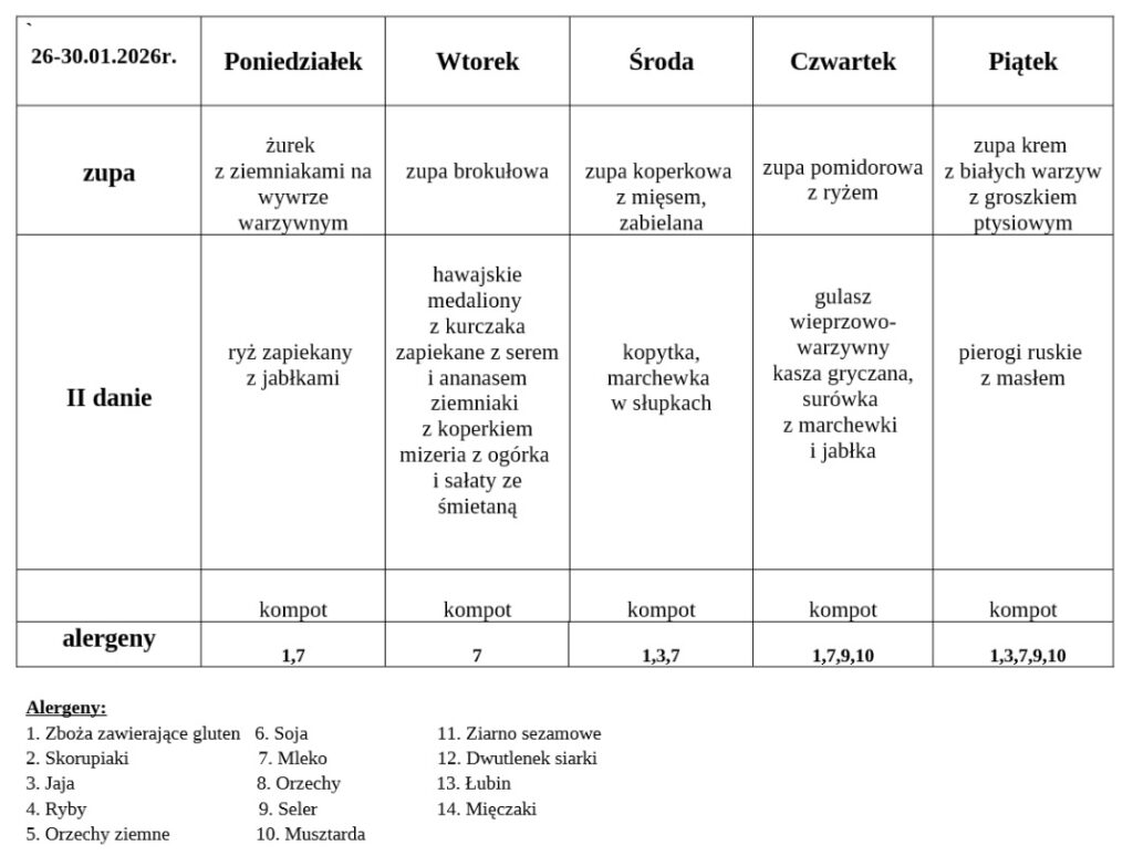 1. Posiłki wydawane są w godzinach: 11:50 – 13:40.