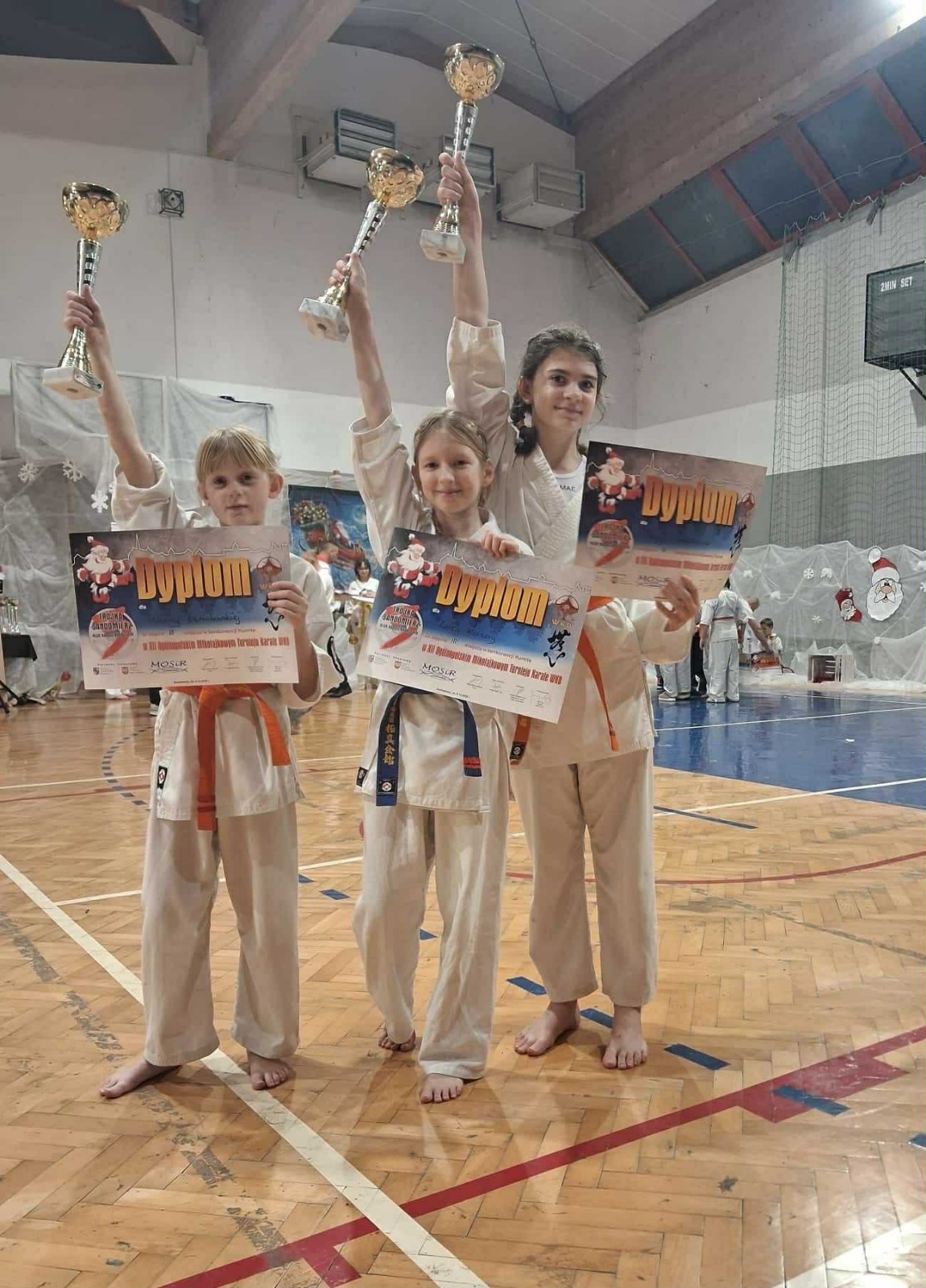 W minioną sobotę (6 grudnia) w Sandomierzu odbył się XII Mikołajkowy Turniej Karate WKB. Uczennice naszej szkoły Taya Szantula, Lena Koczera (obie klasa 5a) i Hania Barwikowska (klasa 3b) zaprezentowały się wspaniale zajmując w swoich kategoriach wagowych 3-cie miejsca. Dziewczyny po raz kolejny pokazały niesamowite umiejętności i wielkie serce do walki. To już kolejne sukcesy na macie naszych zdolnych dziewczyn. Młodym karateczkom życzymy dalszego zapału do treningu i rozwijania swoich umiejętności, jak również dalszych sukcesów.