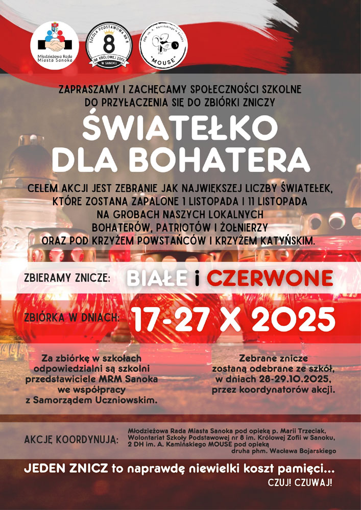 Światełko dla BOHATERA – zbieramy znicze białe i czerwone…