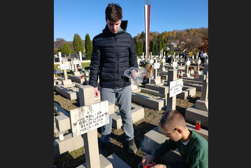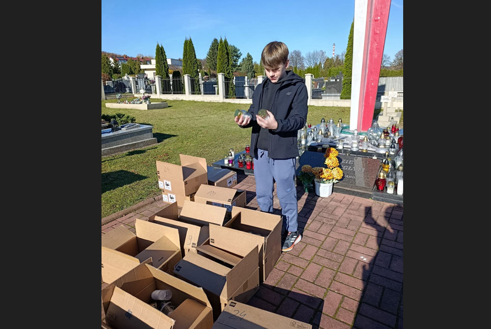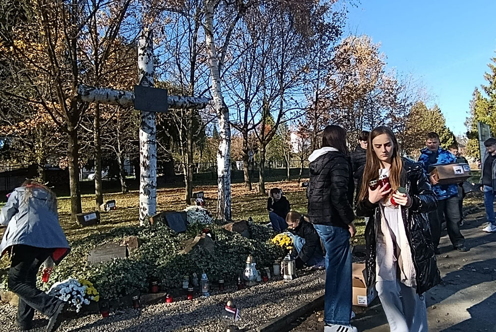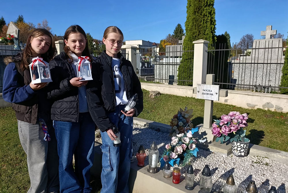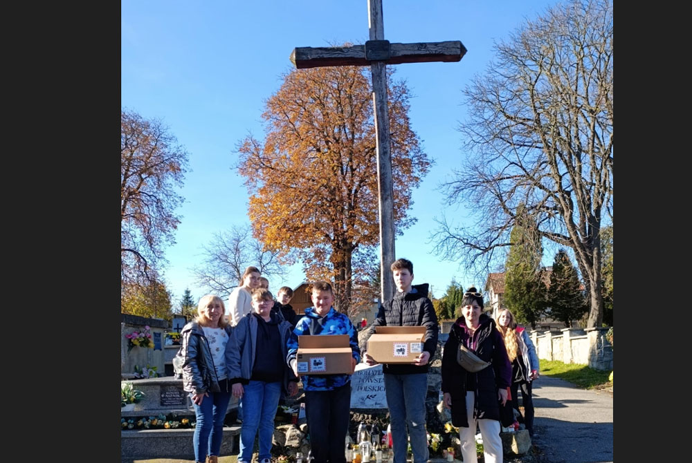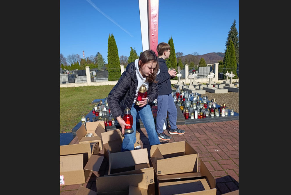 Zebrane znicze zostały rozłożone dzień przed Świętem Zmarłych, czyli 31 października przez uczniów klasy 7b, pod opieką p. Marii Trzeciak oraz p. Eweliny Kędry, na grobach żołnierzy polskich oraz pod Krzyżem Powstań Polskich, Krzyżem Katyńskim i Grobowcem Ofiar Oświęcimskich.