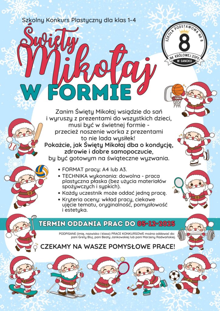 Mikołajkowy KONKURS PLASTYCZNY dla klas 1-4…