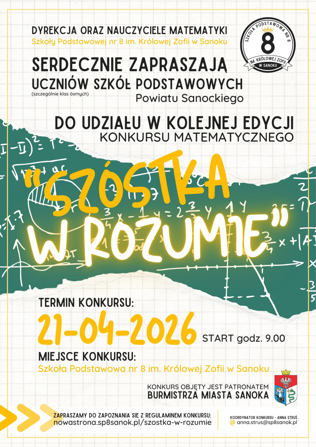 do udziału w kolejnej edycji Konkursu Matematycznego „SZÓSTKA W ROZUMIE”