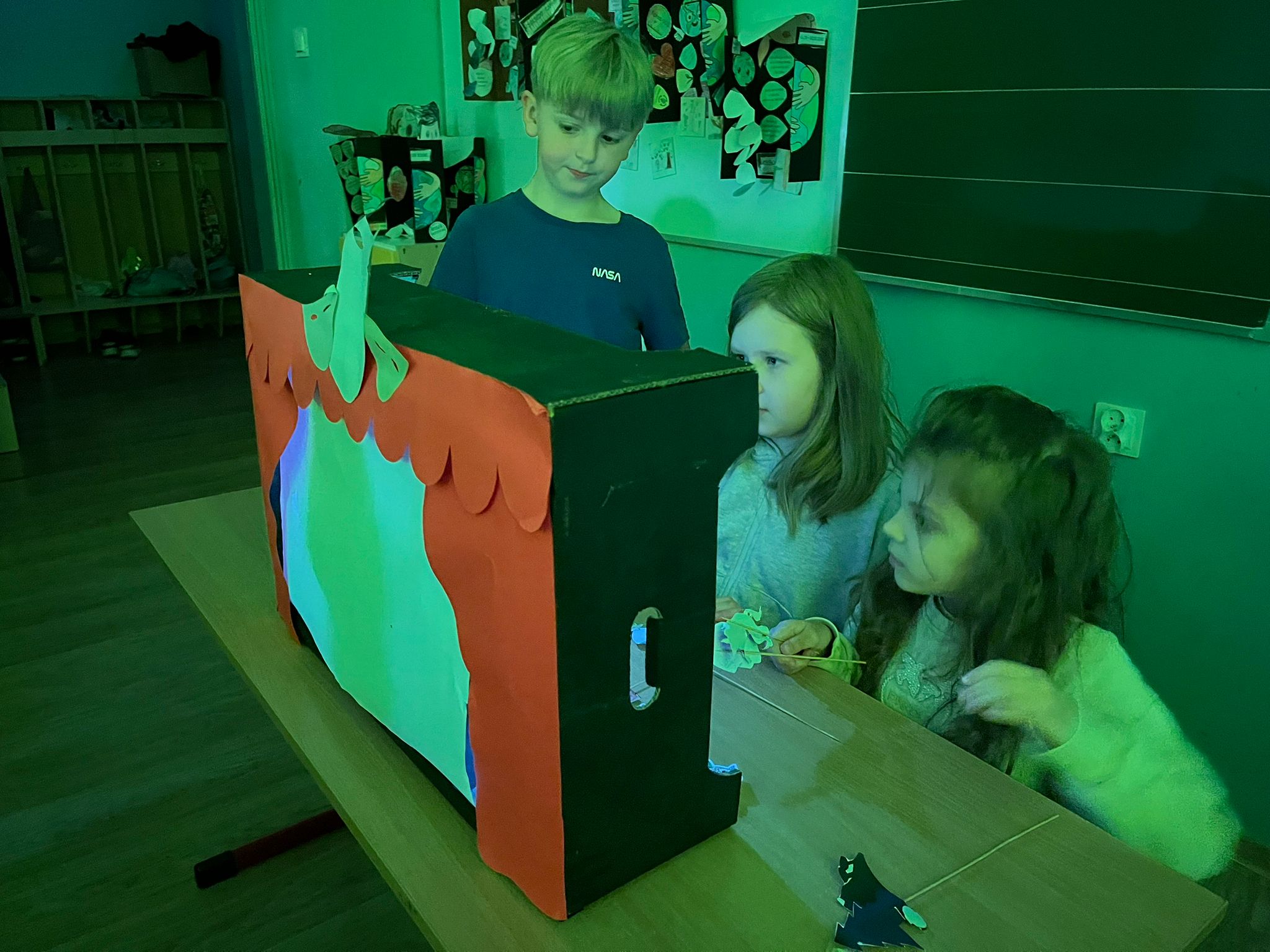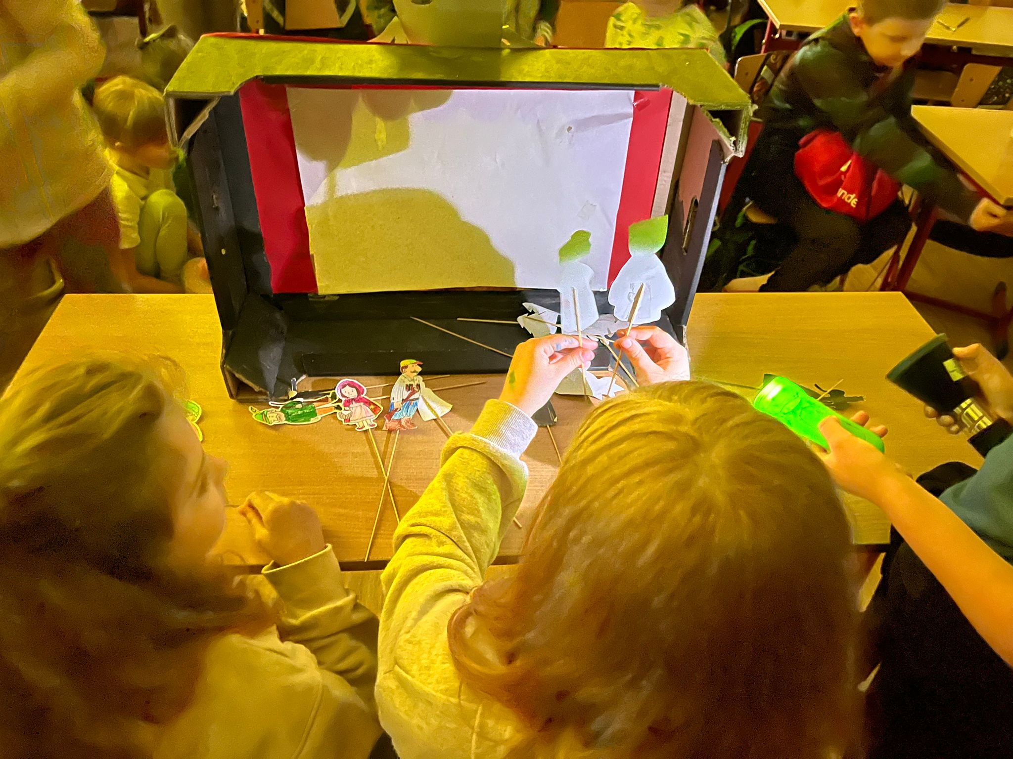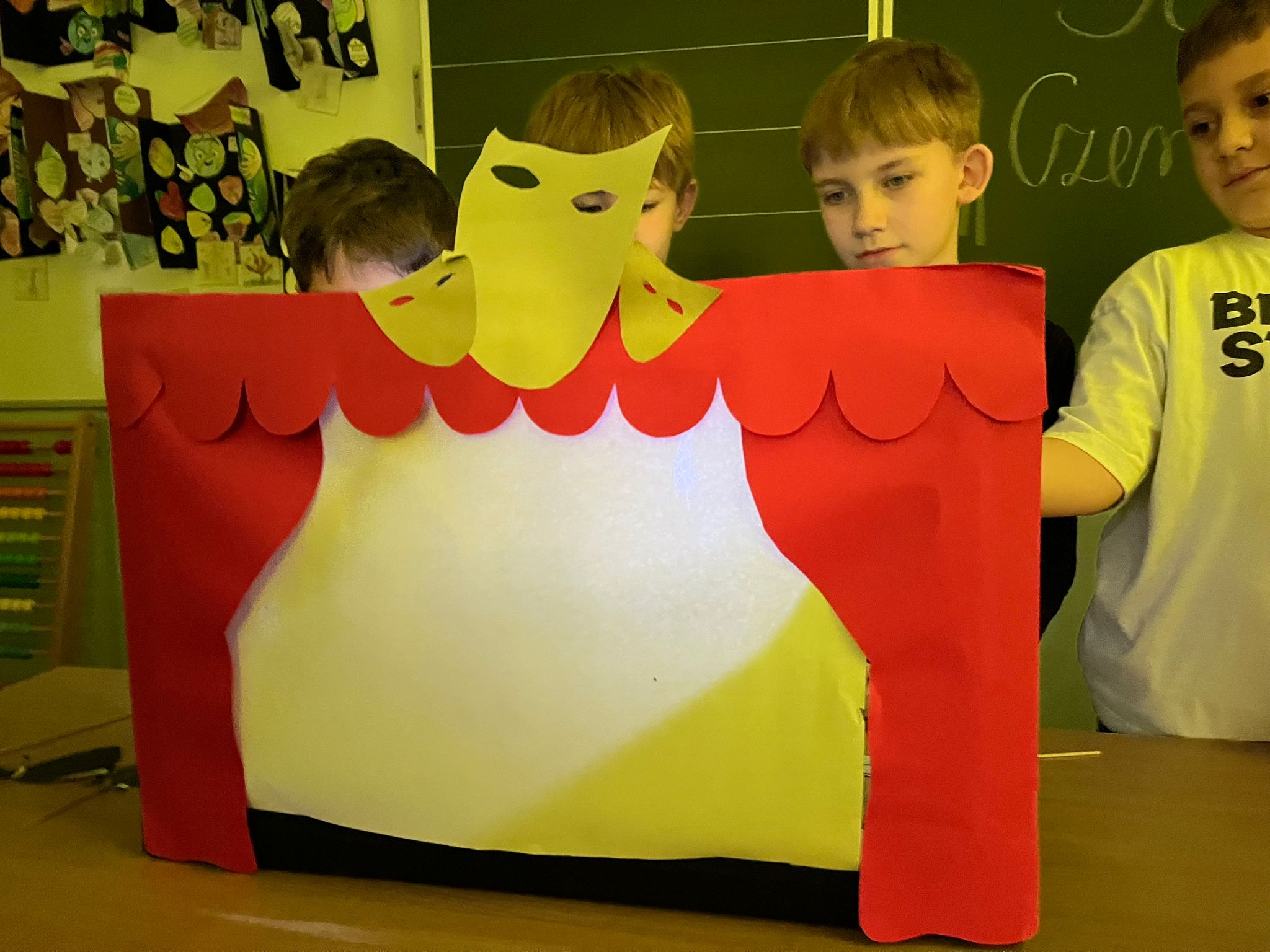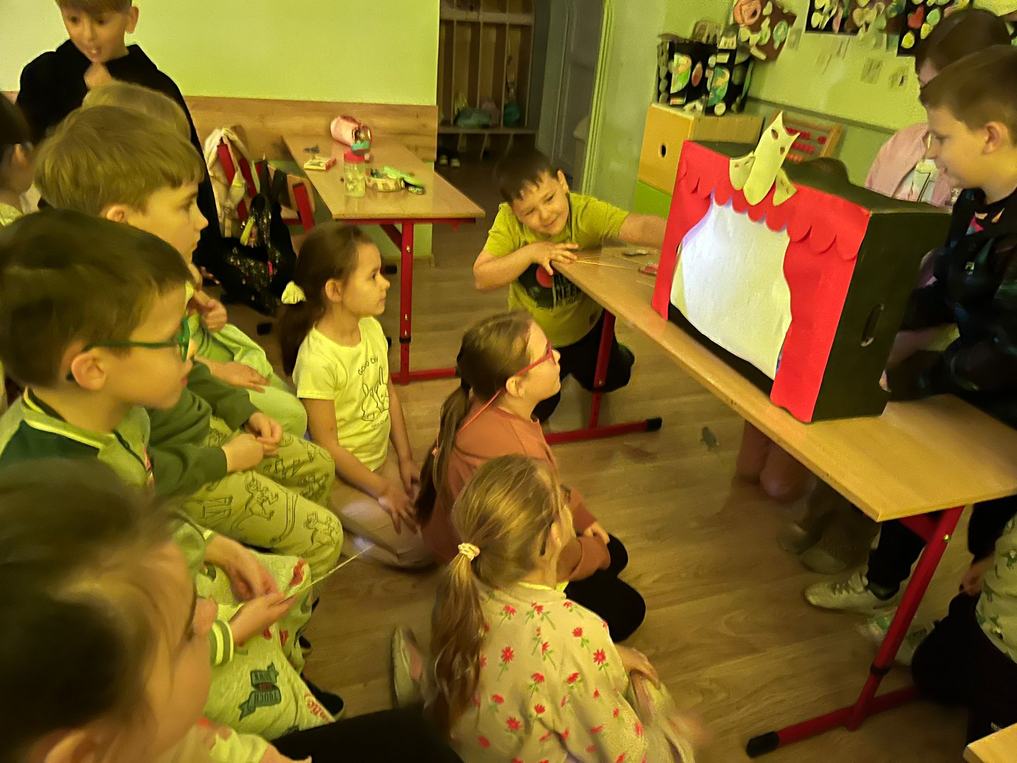 Dzieci podzieliły się na grupy, a każda z nich zaprezentowała swoją wersję przedstawienia, wykorzystując pacynki. Było dużo kreatywności, zaangażowania i świetnej zabawy. Mali aktorzy doskonale wcielili się w swoje role, a każda inscenizacja była niepowtarzalna i pełna pomysłów. Brawo dla wszystkich uczniów za odwagę, współpracę i piękne występy.