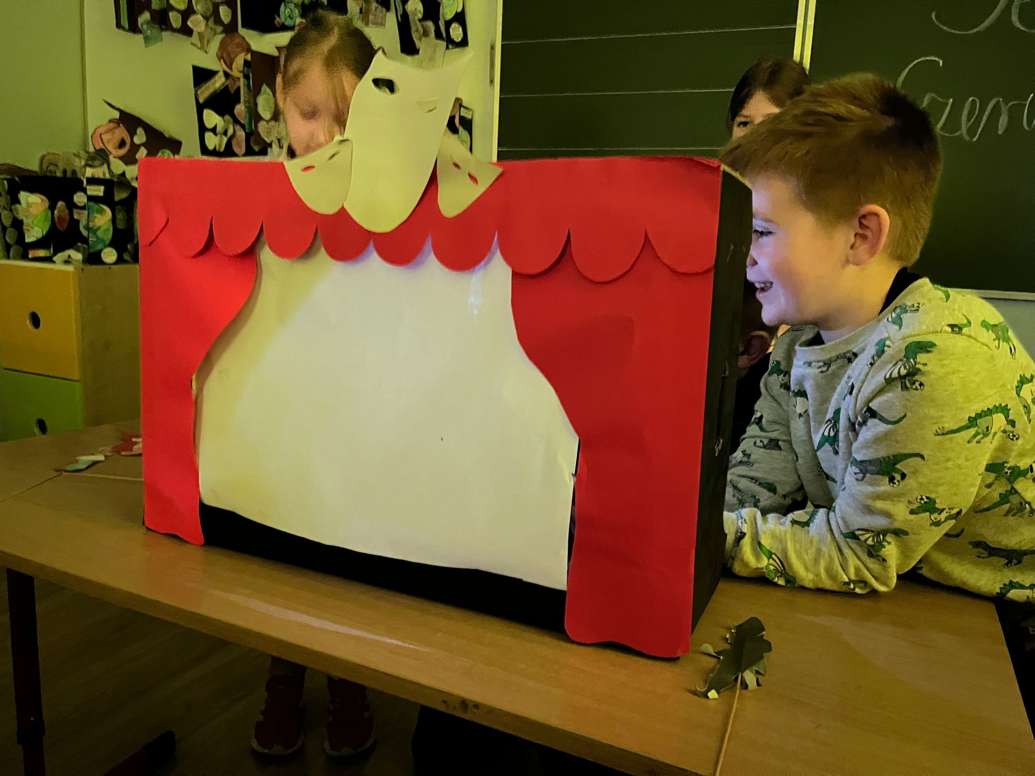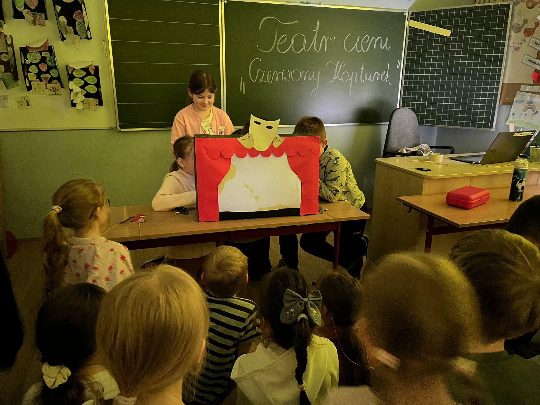 27 kwietnia, w klasie 1a odbyły się wyjątkowe zajęcia – uczniowie przygotowali teatr lalek na podstawie znanej i lubianej bajki „Czerwony Kapturek”.