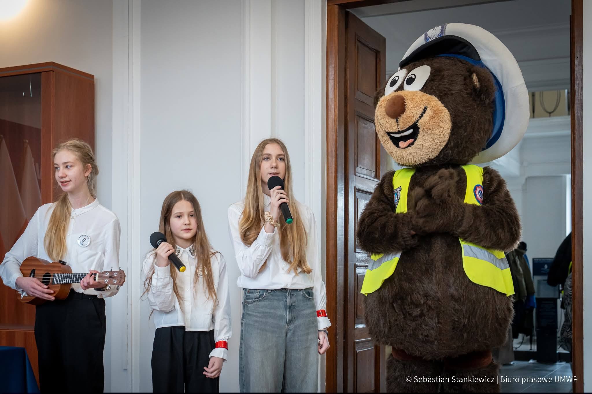 Nasze uczennice: Julia Czyż i Hanna Radożycka z klasy 7a oraz Gabriela Izdebska z klasy 4a uświetniły galę rozdania nagród swoim talentem muzycznym, śpiewając autorska piosenkę, która powstała specjalnie na potrzeby konkursu Odblaskowa Szkoła i grając na ukulele.
