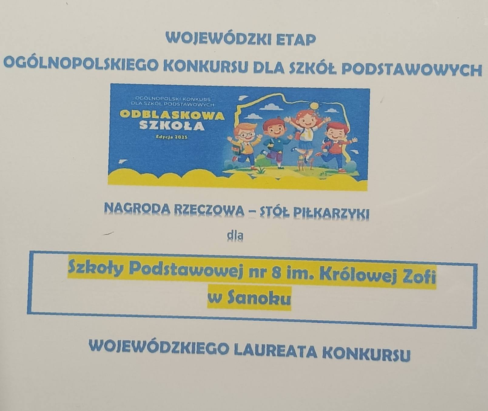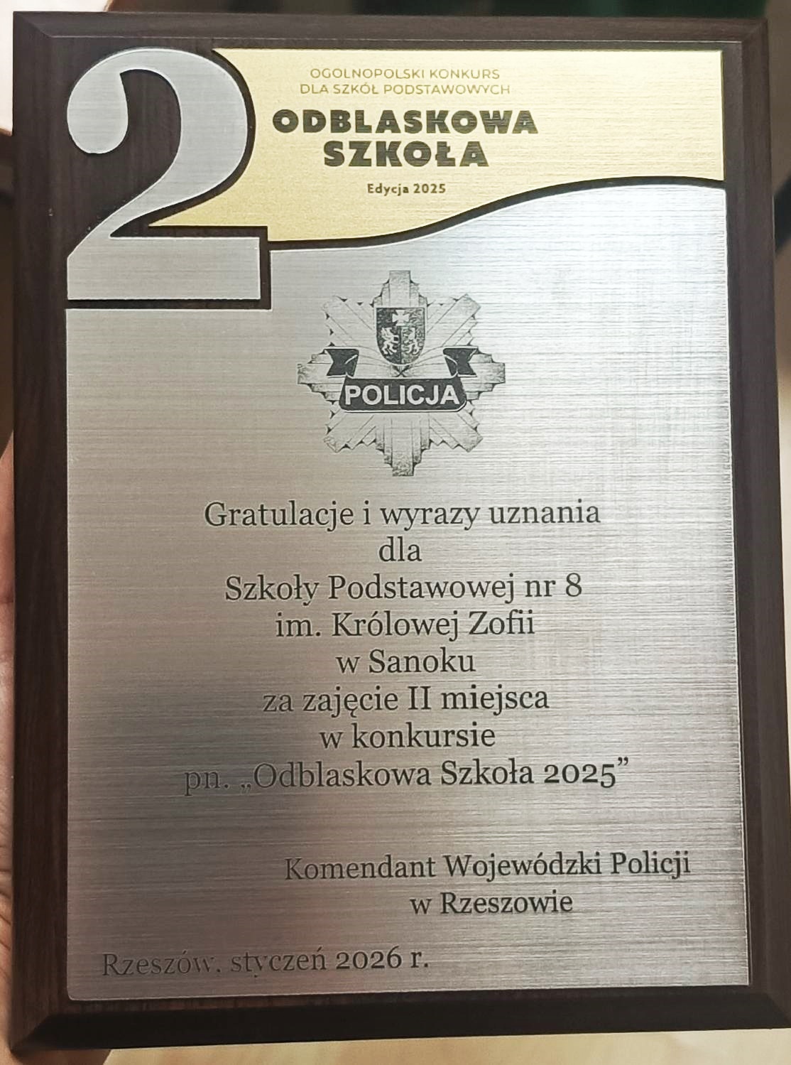 Szkoła Podstawowa nr 8 im. Królowej Zofii w Sanoku wśród LAUREATÓW Ogólnopolskiego Konkursu „ODBLASKOWA SZKOŁA 2025”!