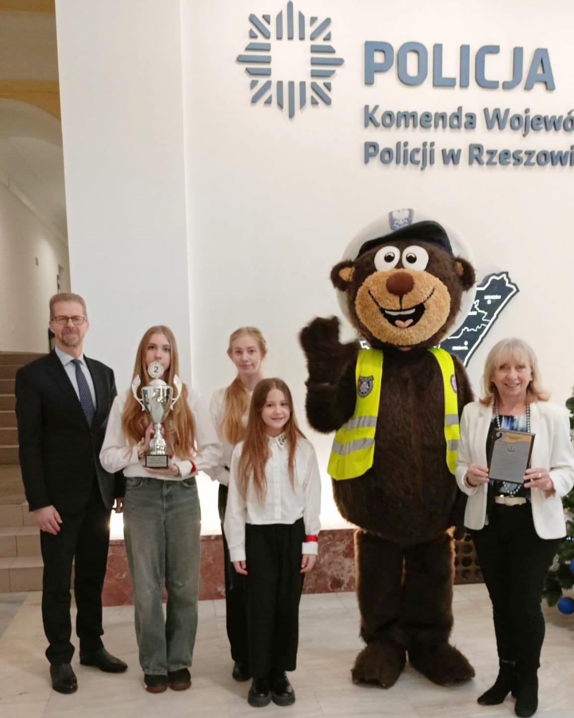 NASZA SZKOŁA ZDOBYŁA ZASZCZYTNE II MIEJSCE, dlatego 28 lutego 2026 r. p. Maria Trzeciak – Szkolny Koordynator Konkursu wraz z p. Dyrektorem Adamem Walem oraz przedstawicielkami naszej szkolnej społeczności udali się do Rzeszowa po odbiór nagród i pucharu