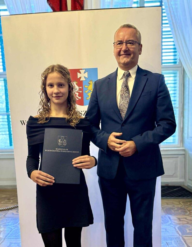 Miło nam poinformować, że 20 października, podczas uroczystej gali, która miała miejsce w Sali Balowej Muzeum w Łańcucie, nasza uczennica (kl.8b) – Zuzanna Leśniak odebrała stypendium Zarządu Województwa Podkarpackiego za wybitne osiągnięcia artystyczne w ramach programu wspierającego rozwój młodzieży uzdolnionej „Nie zagubić talentu”.